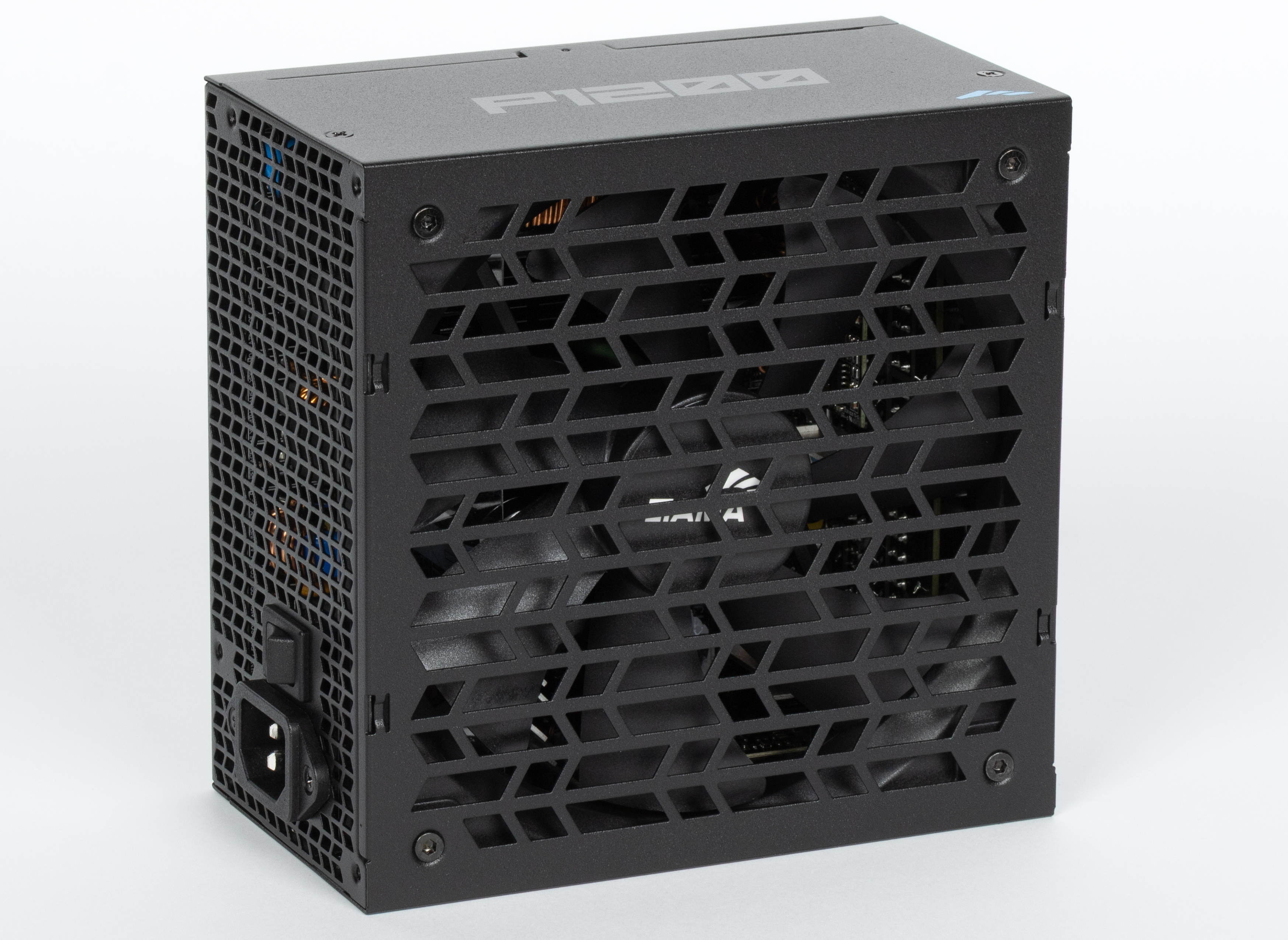 Дизайн Sama P1200 весьма неплох, но применение штампованной решетки над вентилятором чревато повышенным уровнем шума при работе. Впрочем, сейчас штампованные решетки применяются всё чаще и чаще, так как они, видимо, проще в изготовлении, а БП с такими решетками чуть дешевле в производстве.