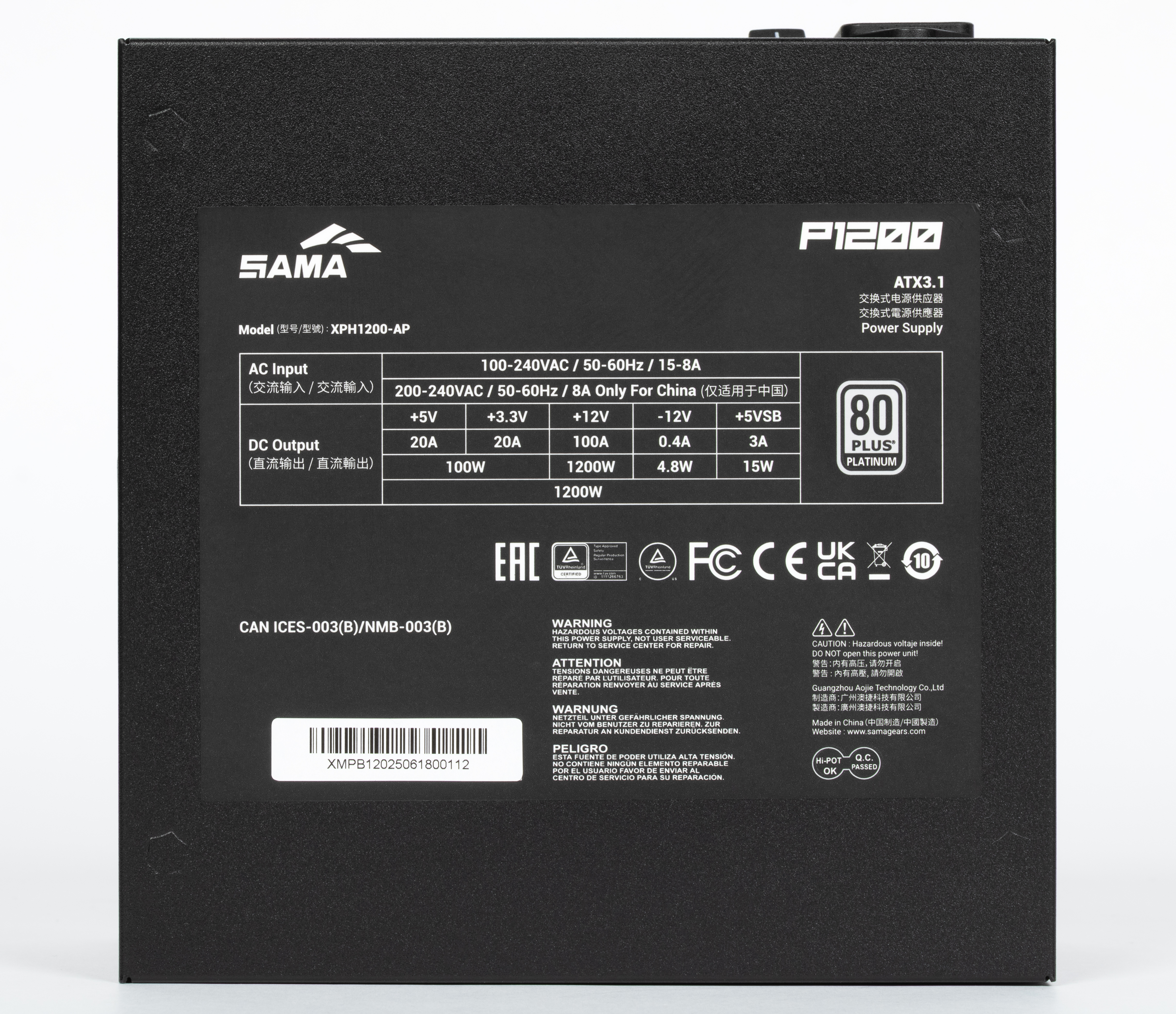 В этот раз мы познакомимся с блоком питания китайской компании Sama из Гуанчжоу — ранее мы уже протестировали несколько ее процессорных кулеров. Модель Sama P1200 имеет мощность 1200 Вт и сертификат 80+ Platinum, соответствует стандарту ATX 3.1 и позволяет питать одновременно сразу две очень мощные современные видеокарты через 16-контактные разъемы PCIe 5.1 (12V-2×6). В данной серии существуют также модели мощностью 850 и 1000 Вт, причем последнюю мы уже протестировали в конце прошлого года.
