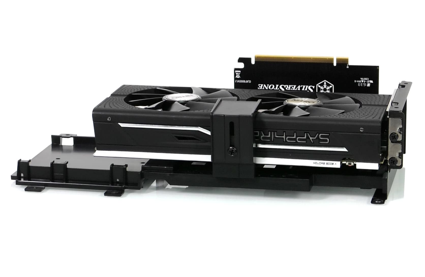 Компания Silverstone одной из первых начала активно использовать райзеры для графических карт в своих компактных корпусах игровой направленности. Благодаря этому системная плата и графический ускоритель перестают быть перпендикулярны друг другу и оказываются в одной плоскости, что позволяет значительно сократить высоту корпуса без дополнительных ограничений на габариты комплектующих.