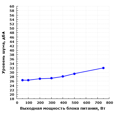 При работе на мощности 750 Вт уровень шума данной модели приближается к среднетипичному значению при расположении БП в ближнем поле. При более значительном удалении блока питания и размещении его под столом в корпусе с нижним расположением БП такой шум можно будет трактовать как находящийся на уровне ниже среднего. В дневное время суток в жилом помещении источник с подобным уровнем шума будет не слишком заметен, особенно с расстояния в метр и более, и тем более он будет малозаметен в офисном помещении, так как фоновый шум в офисах обычно выше, чем в жилых помещениях. В ночное время суток источник с таким уровнем шума будет хорошо заметен, спать рядом будет затруднительно. Подобный уровень шума можно считать комфортным при работе за компьютером.