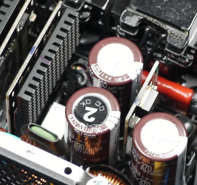 В блоке питания установлены исключительно конденсаторы, произведенные японскими компаниями — преимущественно это продукция Nippon Chemi-Con.