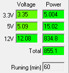 Первым этапом испытаний является эксплуатация блока питания на максимальной мощности продолжительное время. Такой тест с уверенностью позволяет удостовериться в работоспособности БП.