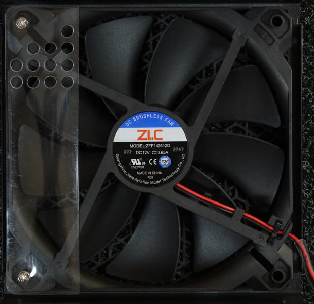 В блоке питания установлен вентилятор ZFF142512D типоразмера 140 мм, основанный на гидродинамическом подшипнике. Произведен вентилятор компанией Guangzhou Jiete Aviation Model Technology. Подключение вентилятора — разъемное, двухпроводное.