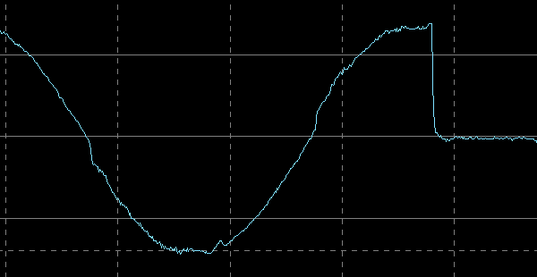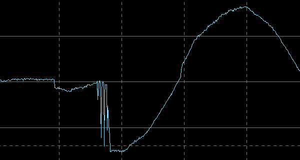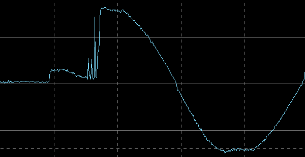 Дребезг контактов у используемых в РН Sven электромагнитных реле получился минимальным, не более 2 мс. Значительных всплесков при этом не наблюдалось.