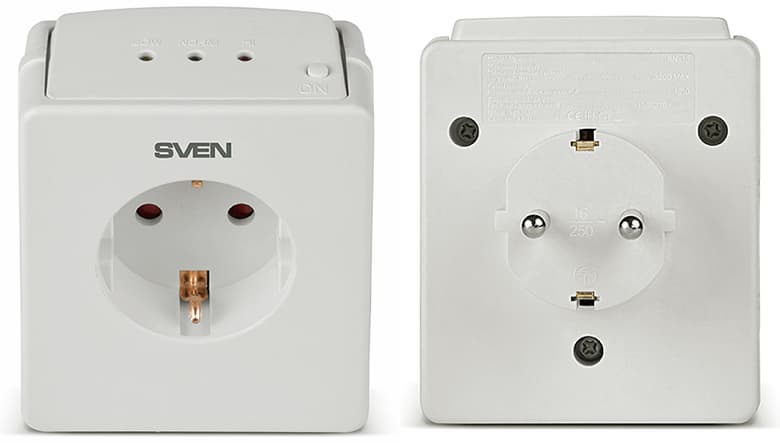 Хотя по форме реле Sven сильно отличаются от рассмотренных нами ранее, при подключении к многоместным розеткам или удлинителям-«пилотам» проблема будет та же: использовать для подключения других устройств соседние места получится вряд ли — они будут частично перекрыты корпусом РН.