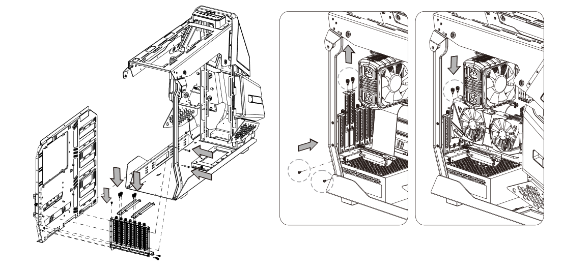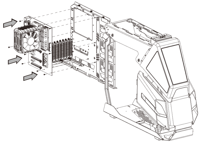 Одновременно с установкой системной платы нужно установить монтажную панель для плат расширения в одном из положений: для установки плат перпендикулярно (то есть в разъемы на плате, по умолчанию) или вертикально при помощи комплектного кронштейна и опционального райзера.