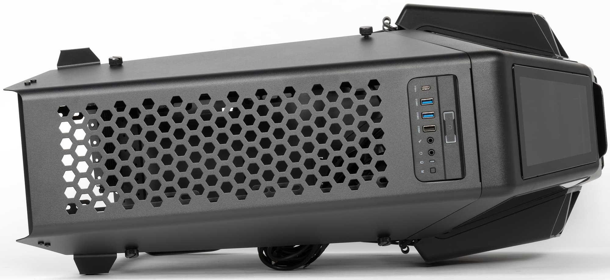 Внешнее оформление тут стилизовано под «фонарь» кабины боевого вертолета «поля боя» типа Ми-28Н или аналогичных решений. Дизайнерский ход интересный, а результат получился весьма оригинальный и запоминающийся. Правда, найдутся люди, которые предпочтут корпус в танковом или военно-морском стиле — возможно, что и такие корпуса когда-нибудь появятся на рынке. Данный корпус явно ориентирован на самосборщиков (DIY).