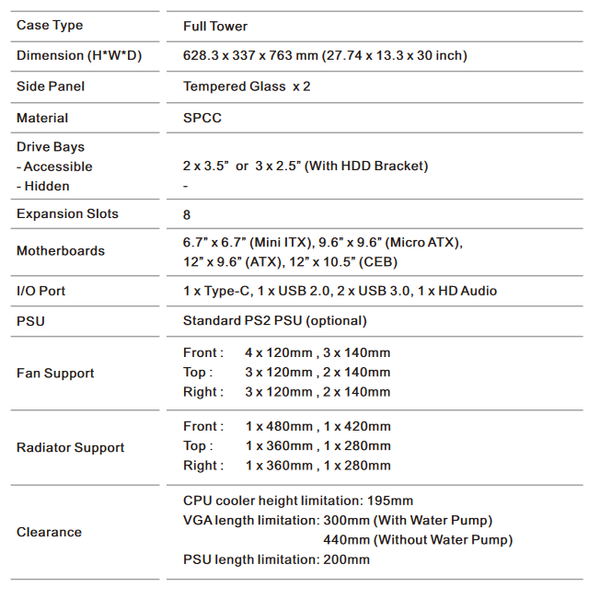 В корпусе можно установить до трех радиаторов толщиной 64 мм, два из которых могут быть типоразмера 280 или 360 мм, а один — 420 мм. Спереди можно установить низкопрофильный радиатор толщиной 40 мм и длиной 480 мм. Наиболее удачным вариантом является размещение радиатора сверху.