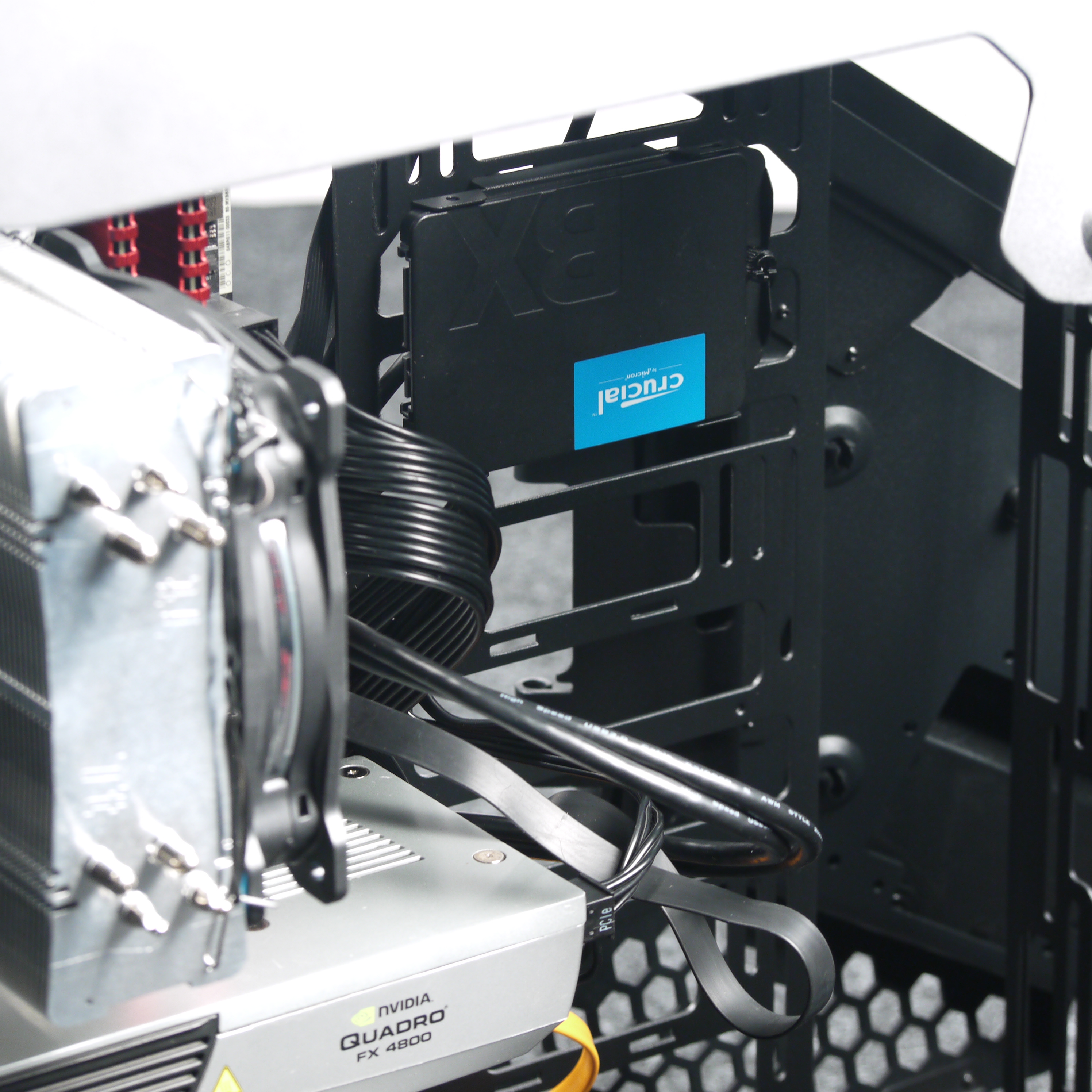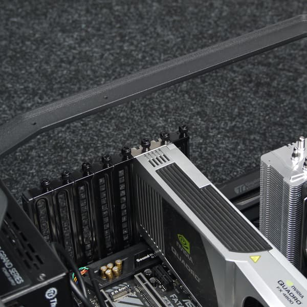 Далее можно установить требуемые платы расширения, например видеокарту, которая может достигать в длину около 300 мм при установленной помпе, а если объем корпуса между системной платой и передней стенкой шасси ничем не занят, вполне можно рассчитывать и на 440 мм. С учетом того, что длина современных видеокарт редко превышает значение 280 мм, размеры корпуса можно считать вполне достаточными.