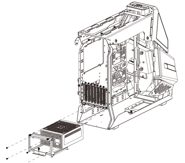 Блок питания устанавливается в общем объеме при помощи монтажной рамки, которая производителем названа мостом. Фиксируется она на днище корпуса при помощи пазогребневой системы и одного винта.