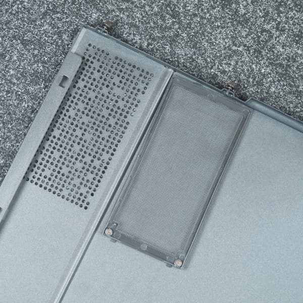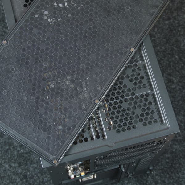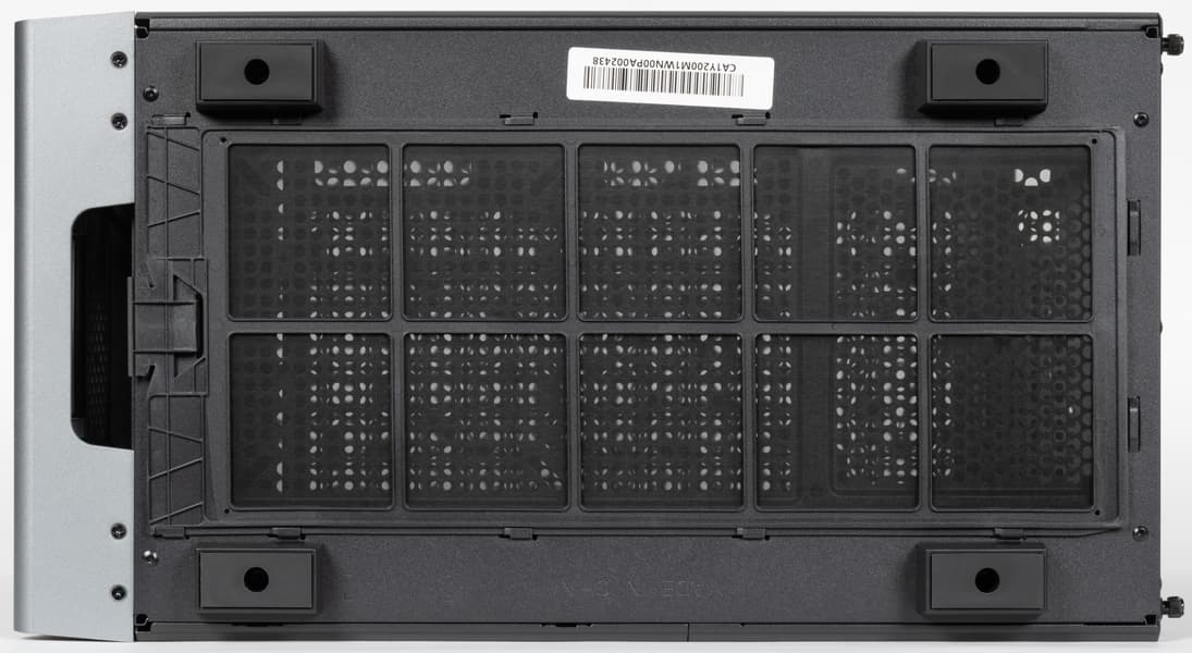 Есть и еще две области с отверстиями: в нижней части правой (металлической) боковой стенки и слева, на съемной наружной крышке отсека для блока питания. Там также есть аналогичные фильтры, для доступа к которым придется снимать крышки, каждая из которых фиксируется винтами.