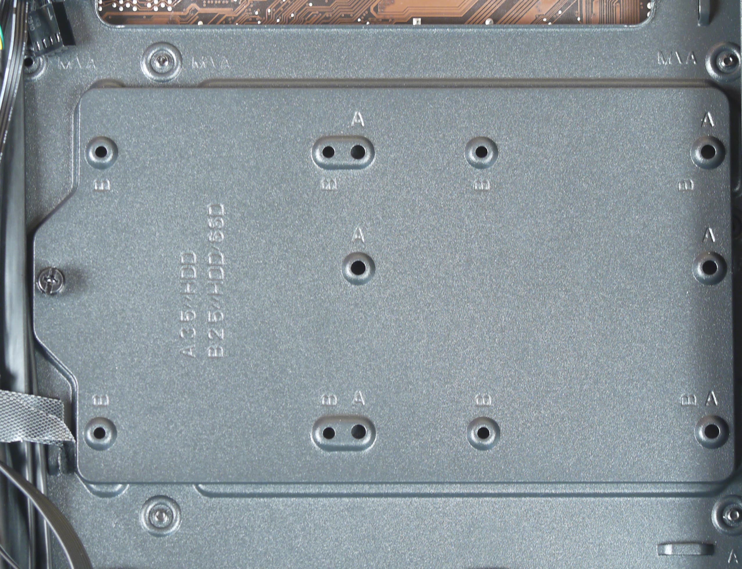 На оборотной стороне основания для системной платы есть места для установки HDD/SSD.