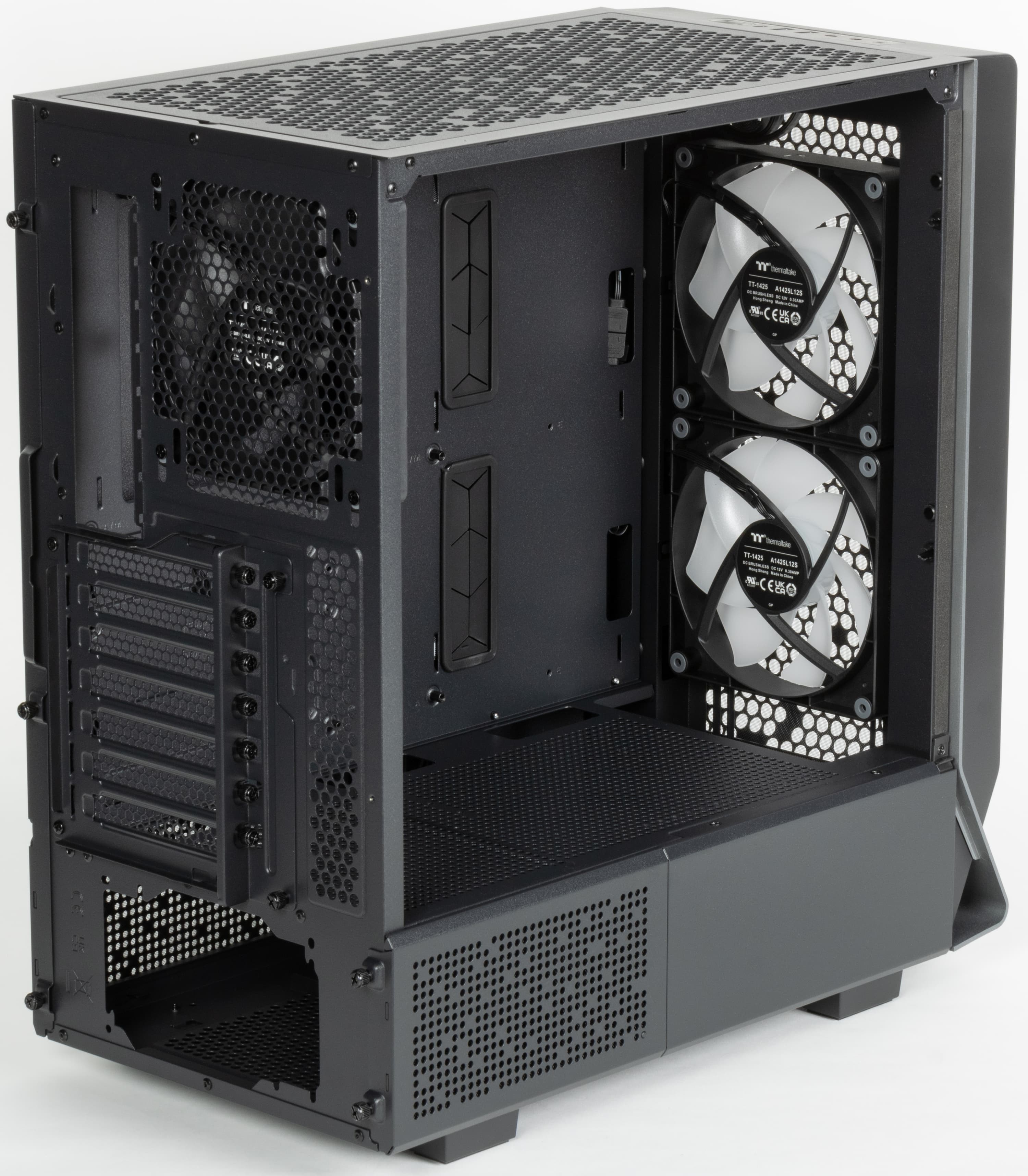 На поверхностях корпуса возможна установка немалого количества вентиляторов: типоразмера 120 мм — до семи штук, 140 мм — до пяти. Посадочные места для них предусмотрены спереди, вверху и сзади.
