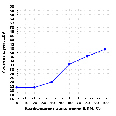 Подобные результаты можно оценить скорее положительно, так как при минимальном КЗ уровень шума достигается очень низкий, при КЗ=100% обеспечивается хорошее охлаждение, хотя и при сильном шуме, а при КЗ менее 60% шум остается в эргономичных пределах.