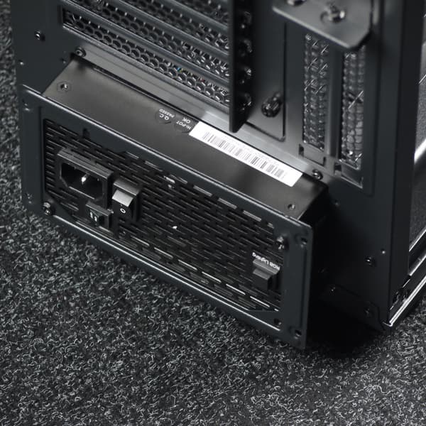 Корпус представляет собой решение башенного типа с вертикально размещаемой платой формата ATX (и менее габаритной) и нижнерасположенным блоком питания с горизонтальным размещением.