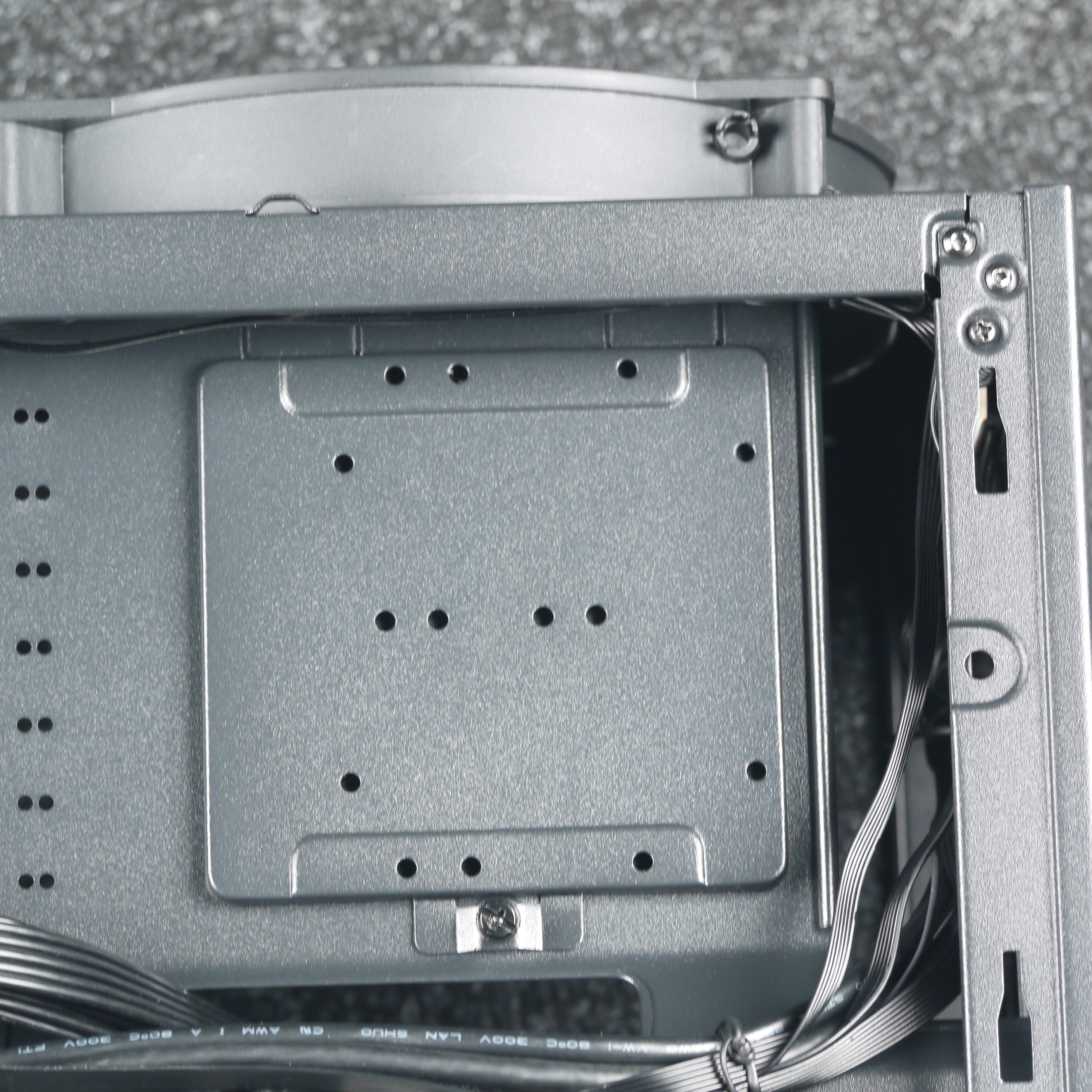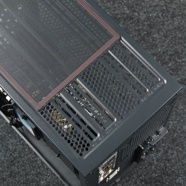 Кожух блока питания в данном случае не только пропускает воздух со стороны передней панели, но и имеет вентиляционную решетку, что не позволяет надеяться на изолирующие свойства этого конструкционного элемента от нагретого воздуха в общем объеме и от «выхлопа» видеокарты. Судя по его конструкции, кожух для этого и не предназначен, в основном он исполняет роль своеобразного элемента жесткости, который обеспечивает дополнительную фиксацию основания для системной платы с нижней стороны. Также кожух создает место для скрытой установки блока питания с выводом проводов сразу за основание для системной платы, что выглядит более эстетично.