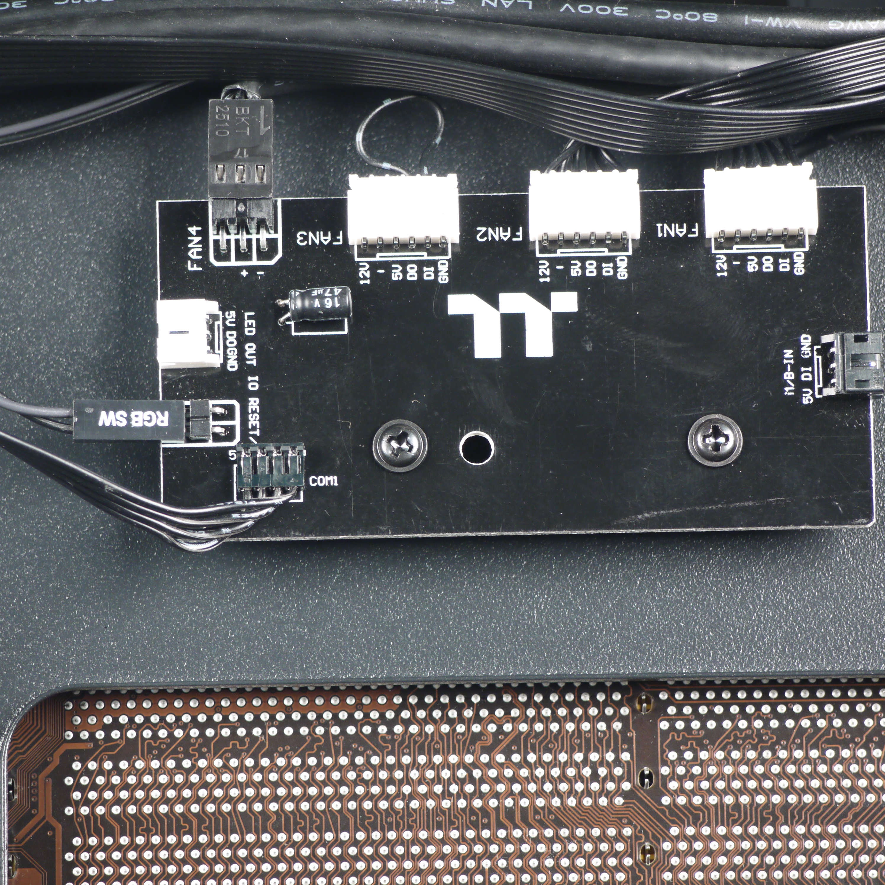 Все три вентилятора можно подключить к штатному контроллеру подсветки — собственно, передние вентиляторы больше никуда подключить и не получится, так как разъем сугубо проприетарный. И все бы ничего, но никаких средств регулирования скорости вращения вентиляторов штатный контроллер не имеет, то есть вентиляторы все время будут вращаться с одинаковой скоростью. Это может оказаться весьма неудобным при реальной эксплуатации.
