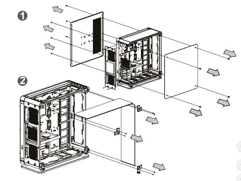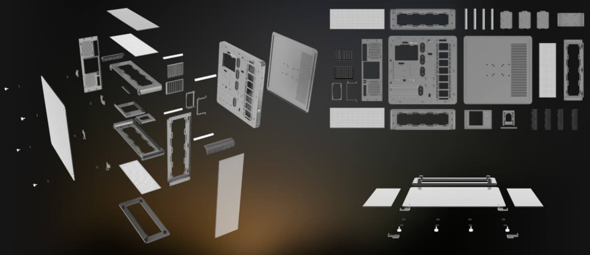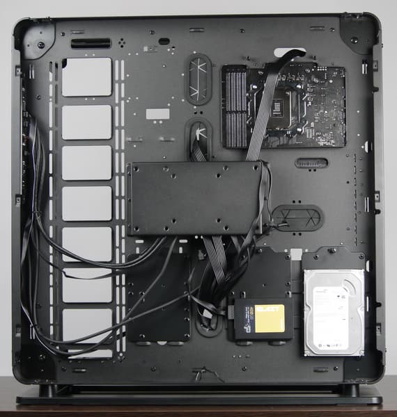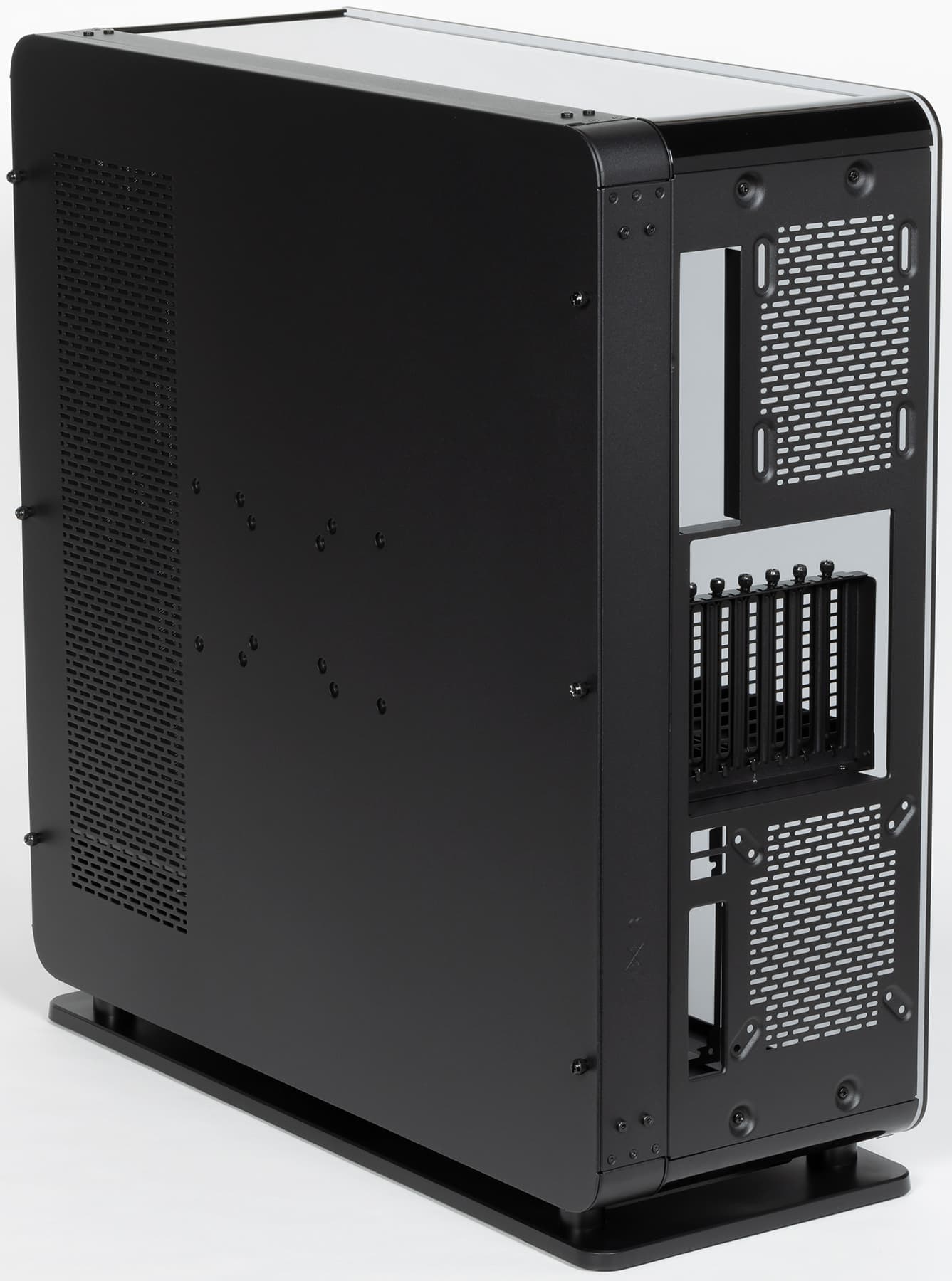 В данном случае основанием конструкции корпуса является усиленное основание системной платы, на которое монтируются все остальные элементы корпуса. При желании все внешние панели можно снять, получив в результате решение типа open frame.