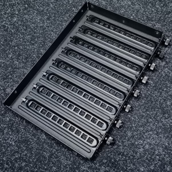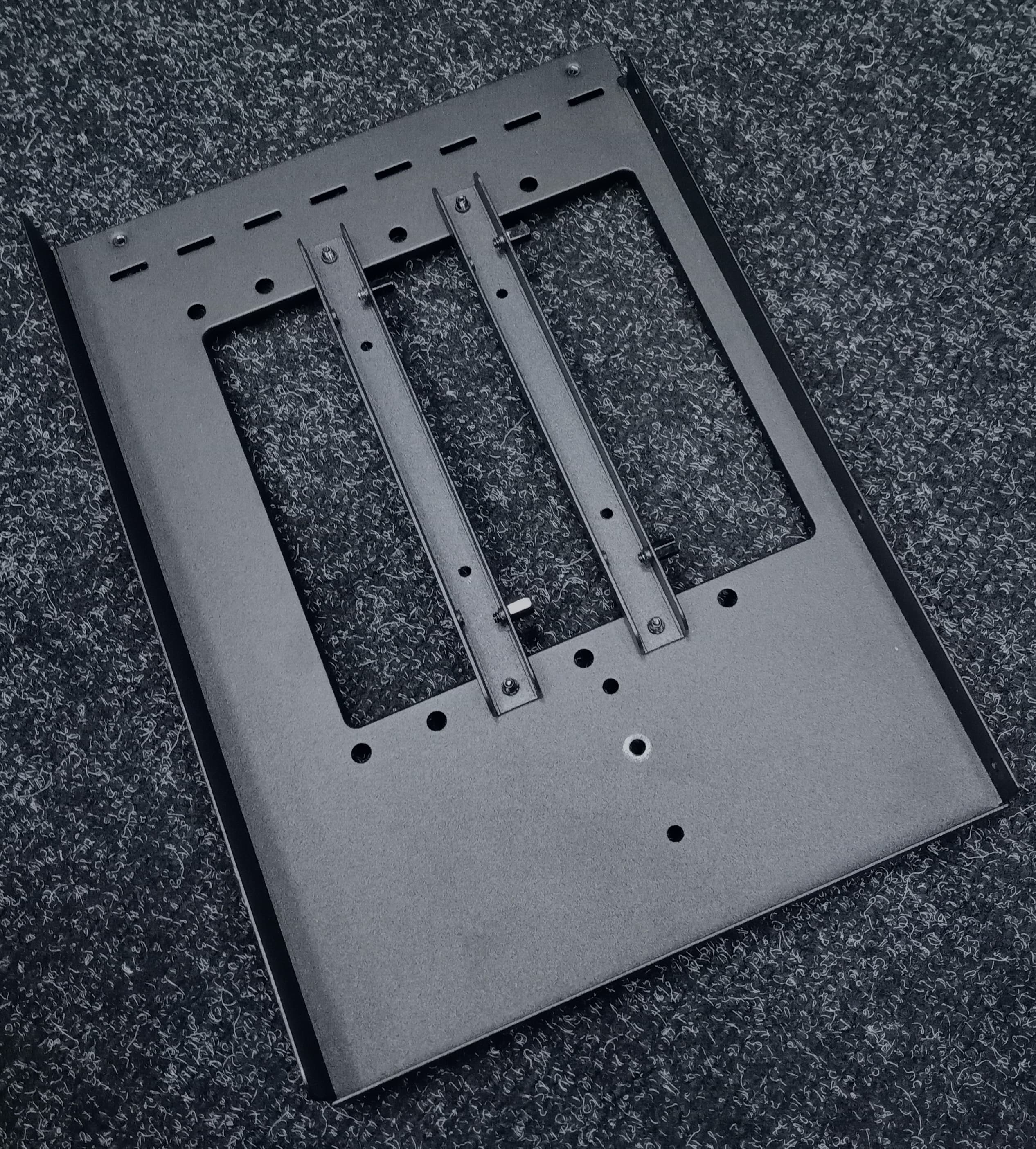 Все стойки для монтажа системной платы заранее проставлены производителем исходя из полноразмерной платы ATX шириной 244 мм. Производителем заявлена поддержка системных плат шириной до 13 дюймов (330 мм), но в таком случае монтажные отверстия с лепестковыми мембранами будут перекрыты платой.