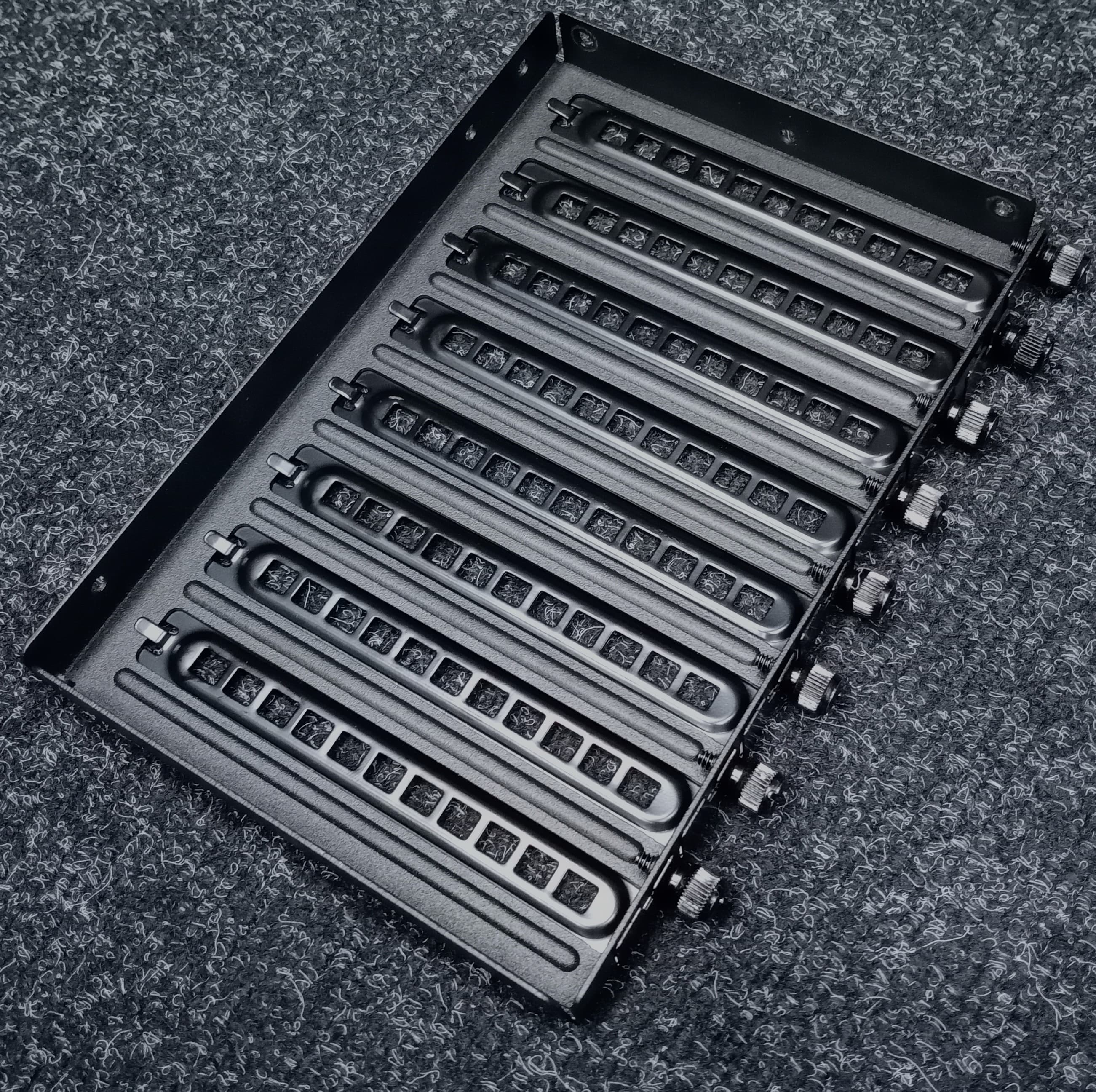 Система фиксации карт расширения тут самая обычная: крепление на винтах с накатной головкой изнутри корпуса с индивидуальной фиксацией. Все заглушки для карт расширения съемные, фиксируются одним винтом с накатной головкой.
