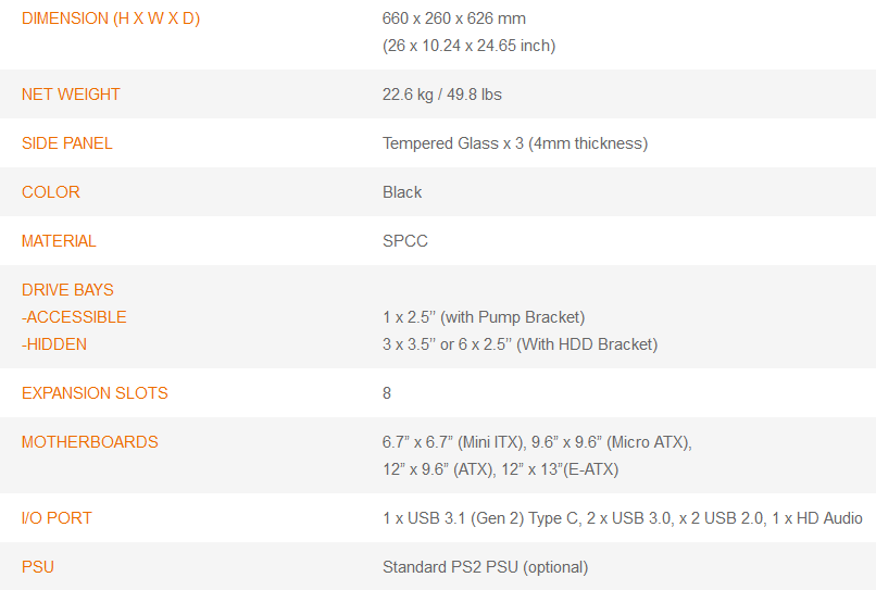 Данная модель будет интересна преимущественно пользователям, собирающим систему с жидкостным охлаждением на дискретных компонентах и с разветвленной системой подсветки. Также корпус хорошо подойдет для сборки презентационных компьютеров, особенно с учетом возможности настенного крепления.