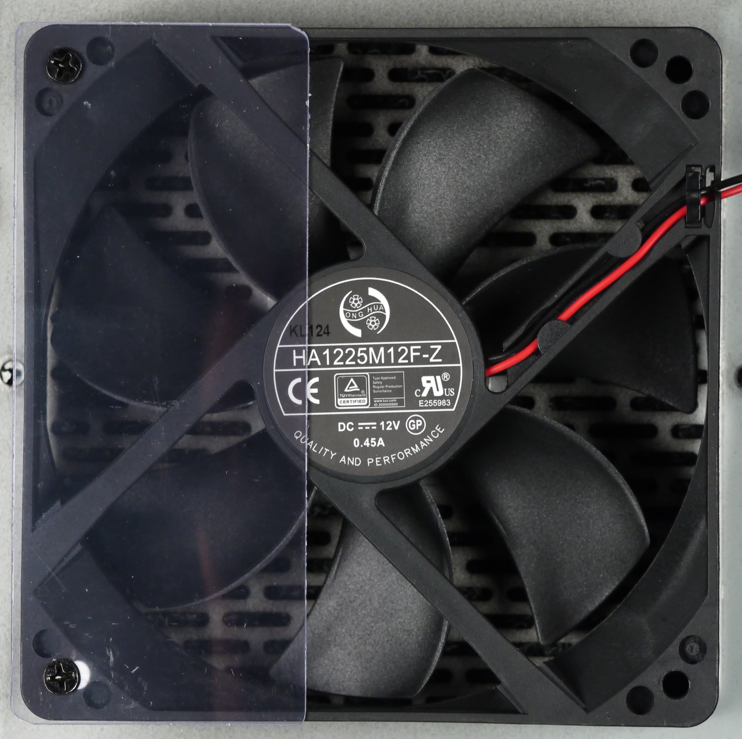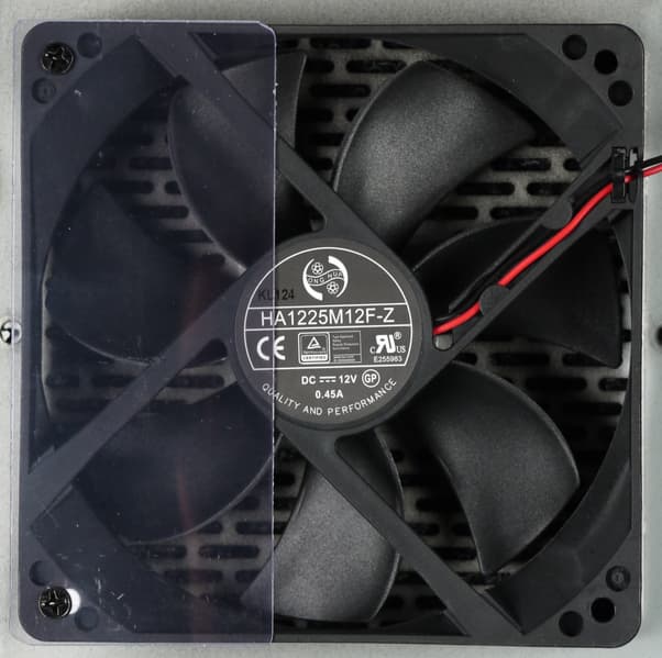 В блоке питания установлен вентилятор Honghua HA1225M12F-Z типоразмера 120 мм (2000 об/мин), подключение двухпроводное, через разъем. Вентилятор основан на гидродинамическом подшипнике, что подразумевает долгий срок его службы.