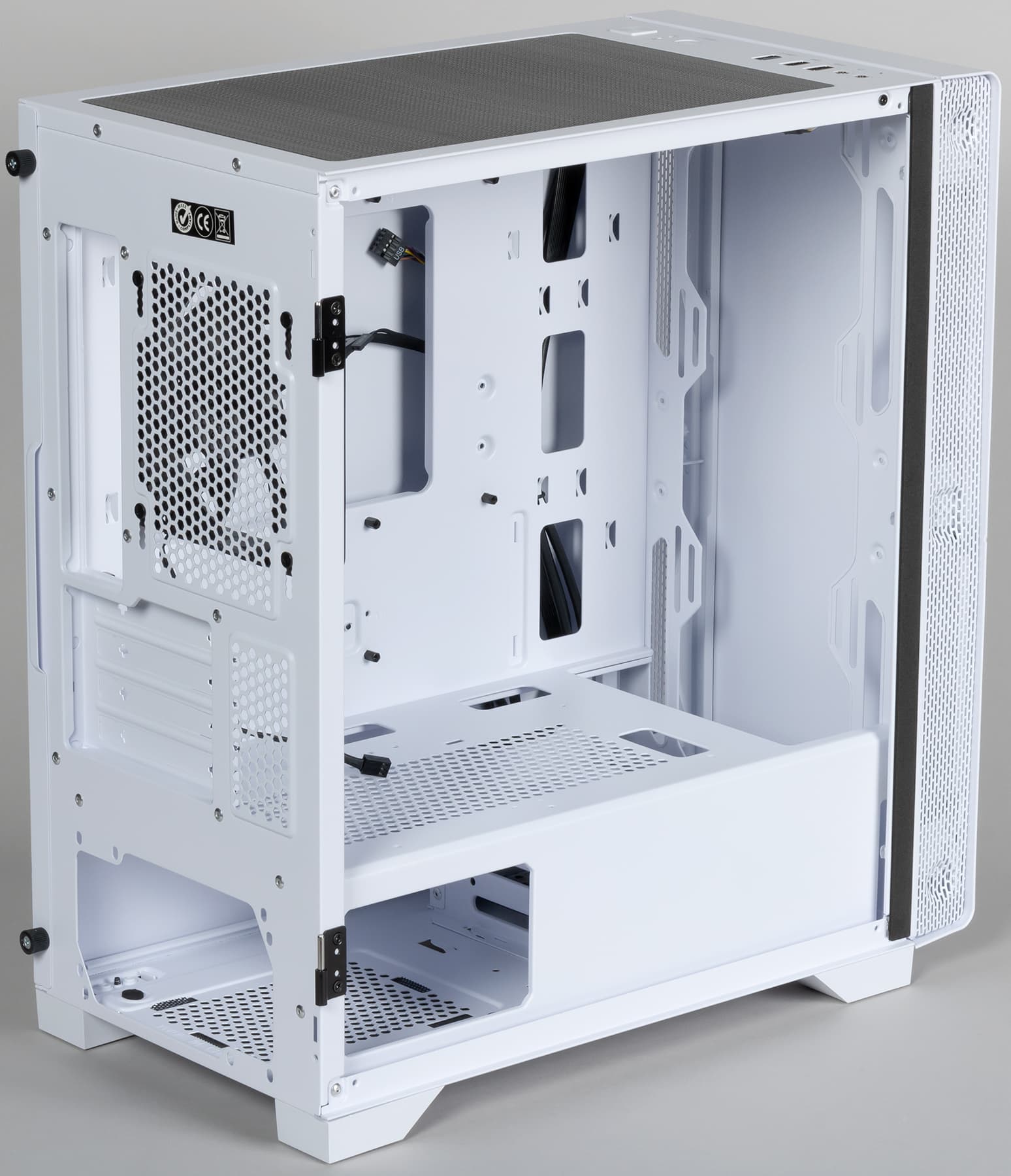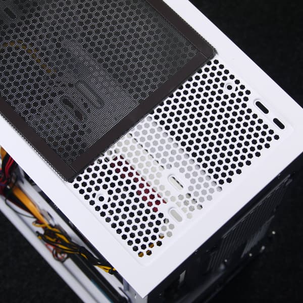 Выглядит S100 Tempered Glass даже дороже своей реальной стоимости, также снаружи почти нет пластиковых деталей, если не считать верхнего фильтра, который тоже можно было бы сделать белого цвета. Поэтому и на ощупь корпус весьма приятен, что особенно актуально, если системный блок установлен на столе.