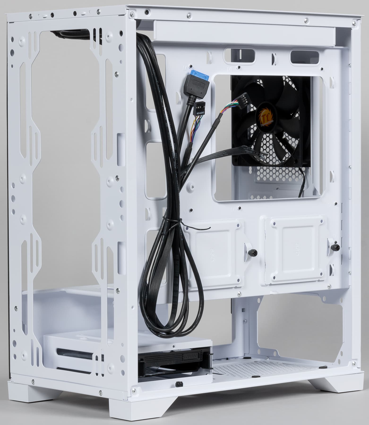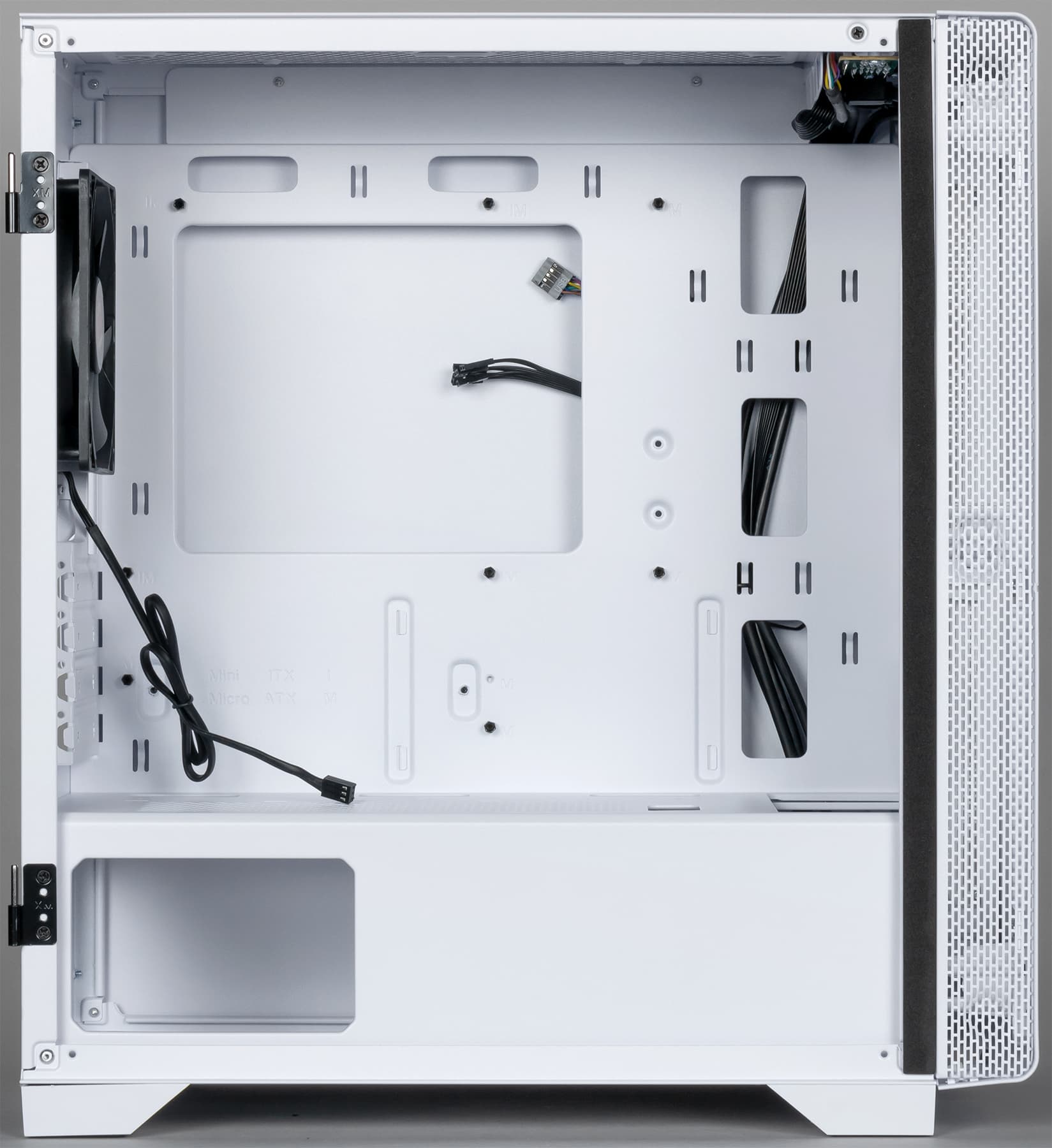 В корпусе предусмотрена возможность установки вентиляторов типоразмера 120, 140 и 200 мм. Посадочные места для них имеются спереди, сверху и сзади.