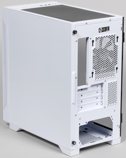 Таким образом, в целом уровень шума у корпуса низкий, но достигается это благодаря использованию всего одного, да еще и низкоскоростного вентилятора, установленного сзади. Для большинства недорогих конфигураций такого охлаждения будет вполне достаточно, особенно с учетом наличия верхнего выхлопа. Но при сборке системы с высоким тепловыделением лучше дооснастить корпус вентилятором сверху, что обеспечит улучшенный теплоотвод, а также заменить задний вентилятор, желательно на модель с ШИМ-управлением.