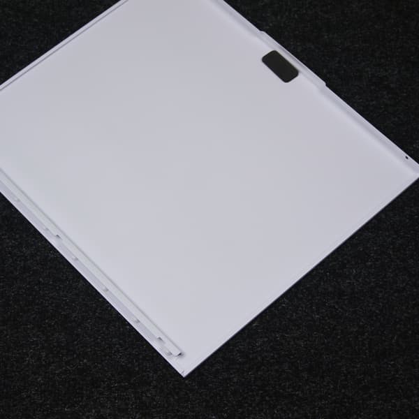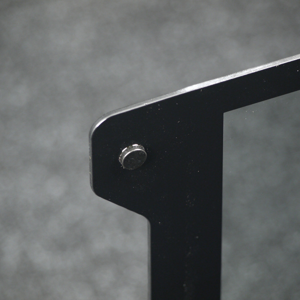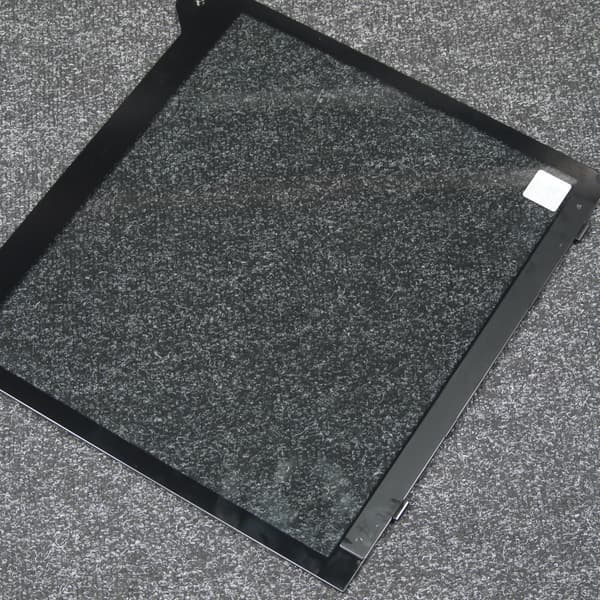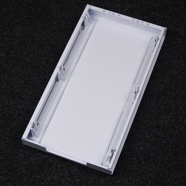 Подвес панели осуществляется на разъемные петли со стороны задней стенки. Имеется механизм фиксации при помощи магнитов, которые приклеены непосредственно к стеклу.