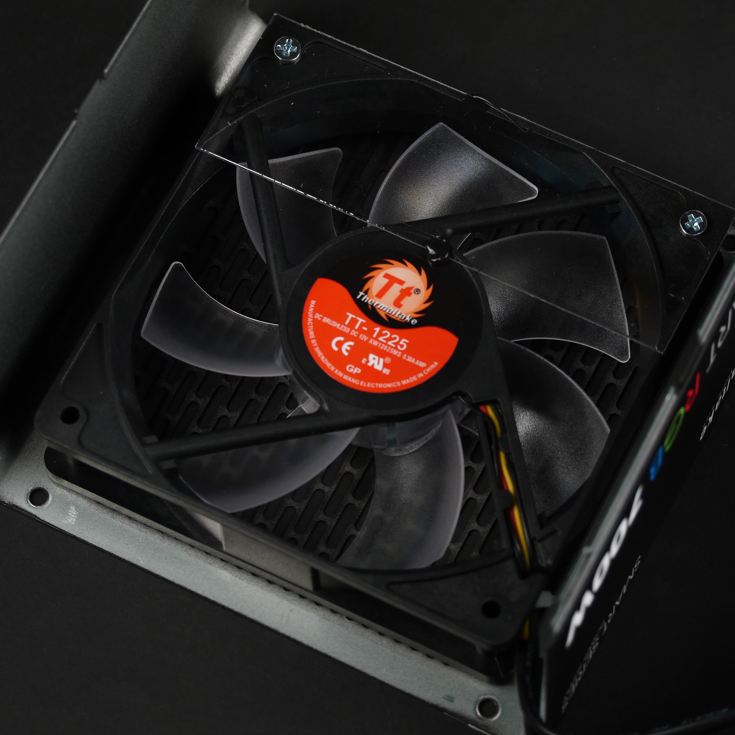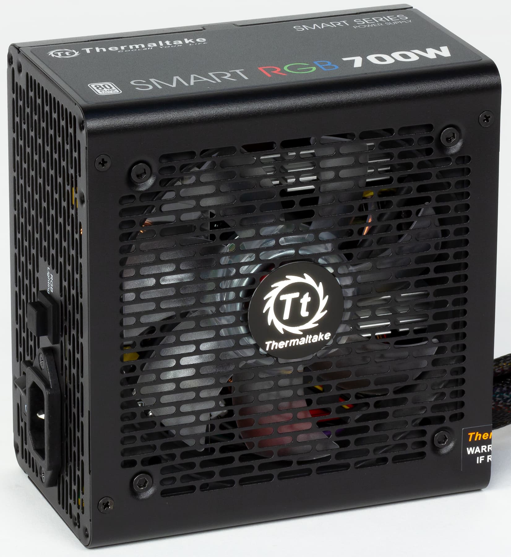 В блоке питания установлен вентилятор типоразмера 120 мм с RGB-подсветкой. Вентилятор основан на подшипнике скольжения. Подсветка управляется при помощи одной кнопки, расположенной на внешней стенке блока питания. При нажатии кнопки происходит перебор фиксированных вариантов подсветки. Никаких пользовательских настроек тут не предусмотрено.
