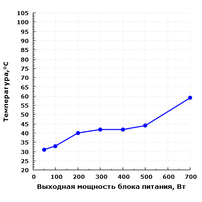Дальнейшее повышение мощности нагрузки приводит к заметному увеличению уровня шума блока питания.