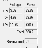 При типичном распределении мощности по каналам отклонения от номинала не превышают 4% по каналам +5VDC и +3.3VDC. Также стоит отметить невысокую нагрузочную способность канала +3.3VDC в целом.