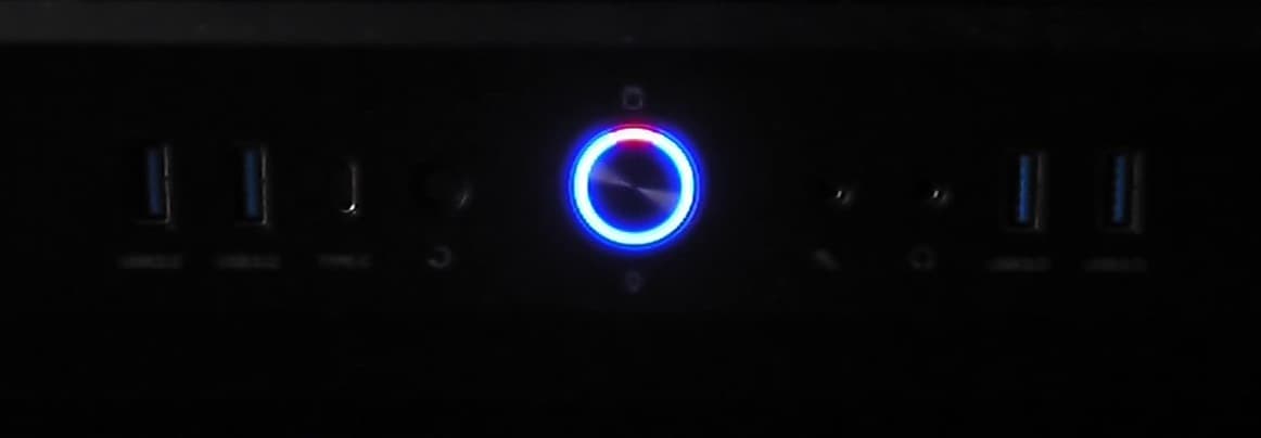 Опоясывающее кнопку включения кольцо используется для индикаторов. Бо́льшую его часть занимает индикатор включения голубого цвета, там же расположен и индикатор активности накопителей красного цвета.