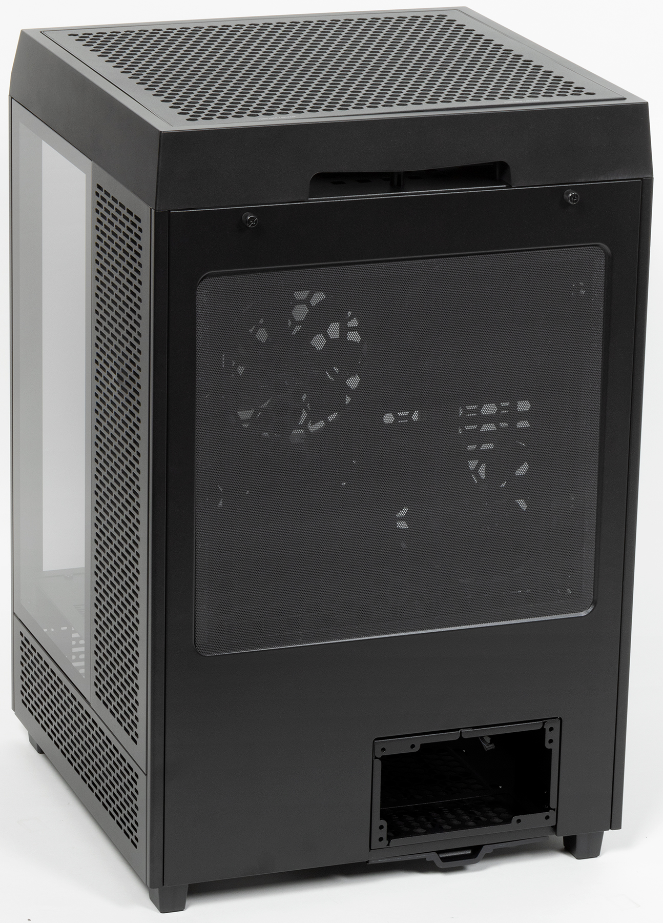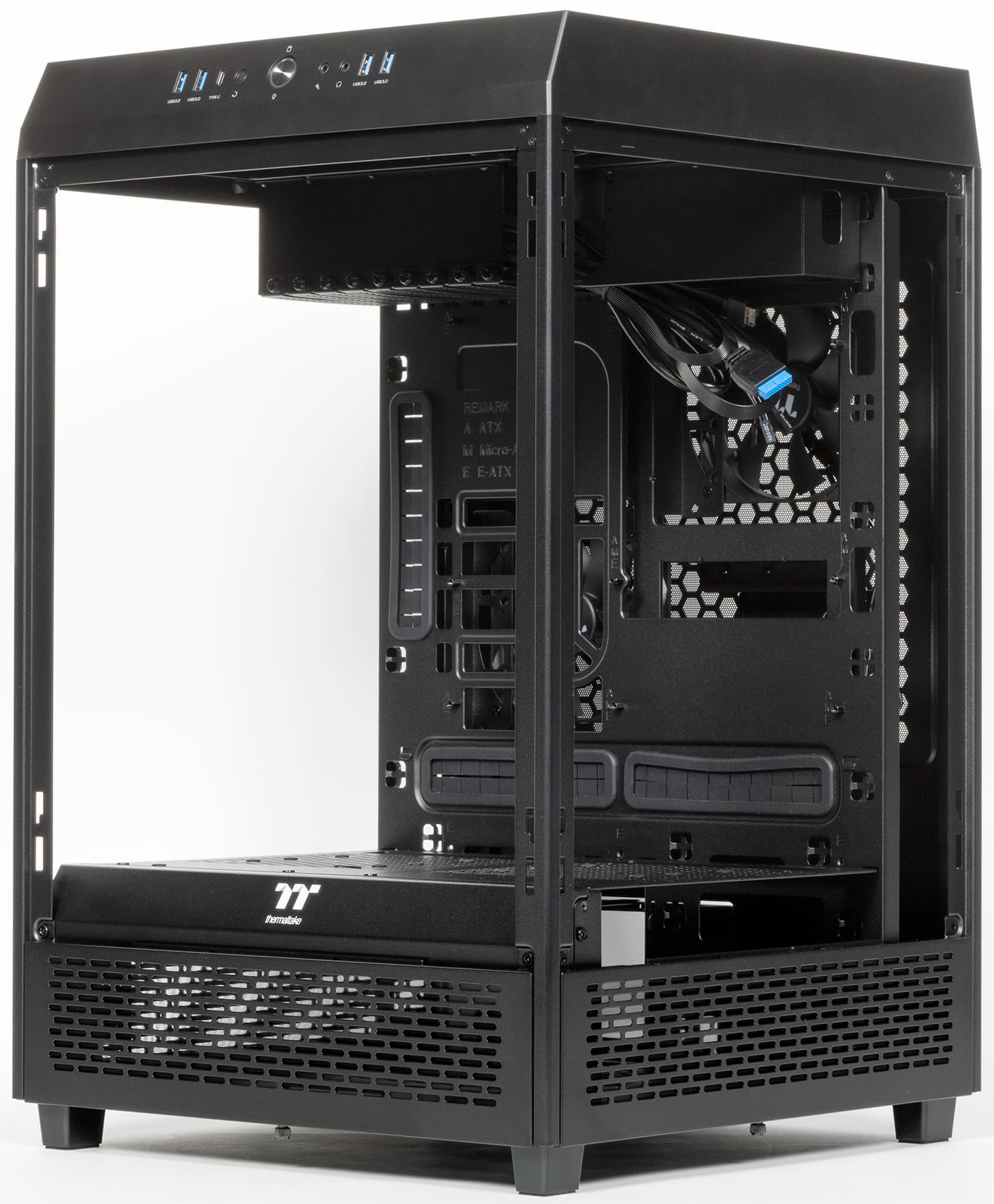 Корпус оставил хорошее впечатление как благодаря достаточно высокому качеству изготовления, так и благодаря удобству сборочного процесса, который не является идеальным, в основном из-за больших габаритов корпуса, но, тем не менее, заслуживает высокой оценки. Из достоинств Thermaltake The Tower 500 стоит отметить, что при необходимости можно снять любую панель и получить доступ к нужному месту внутри корпуса. Имеется возможность установить не только СЖО (в том числе на дискретных компонентах), но и большое количество накопителей, в том числе типоразмера 3,5 дюйма. Отдельно стоит отметить качественно реализованную, насколько это возможно в данном случае, систему защиты от пыли.