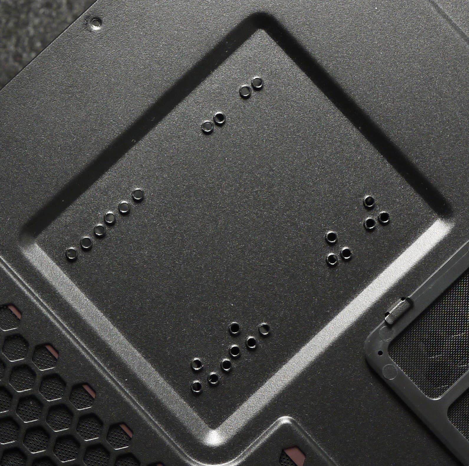 Еще два посадочных места для (вытяжных) вентиляторов 120 или 140 мм предусмотрены сзади на монтажной пластине.