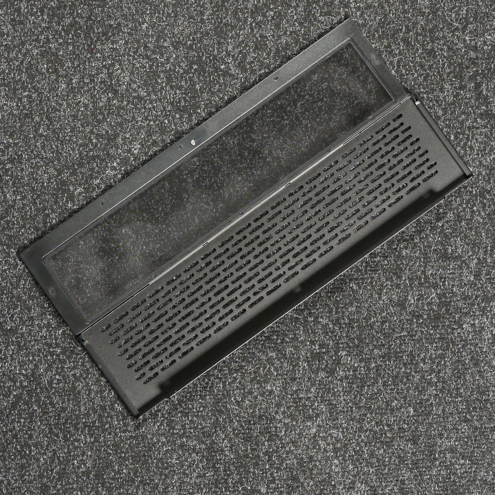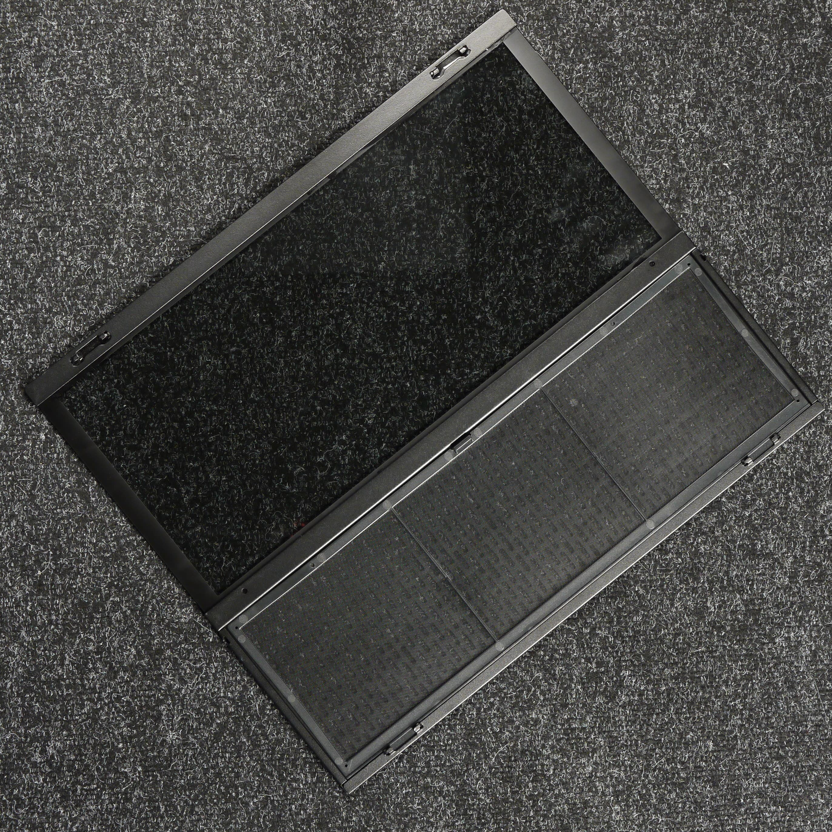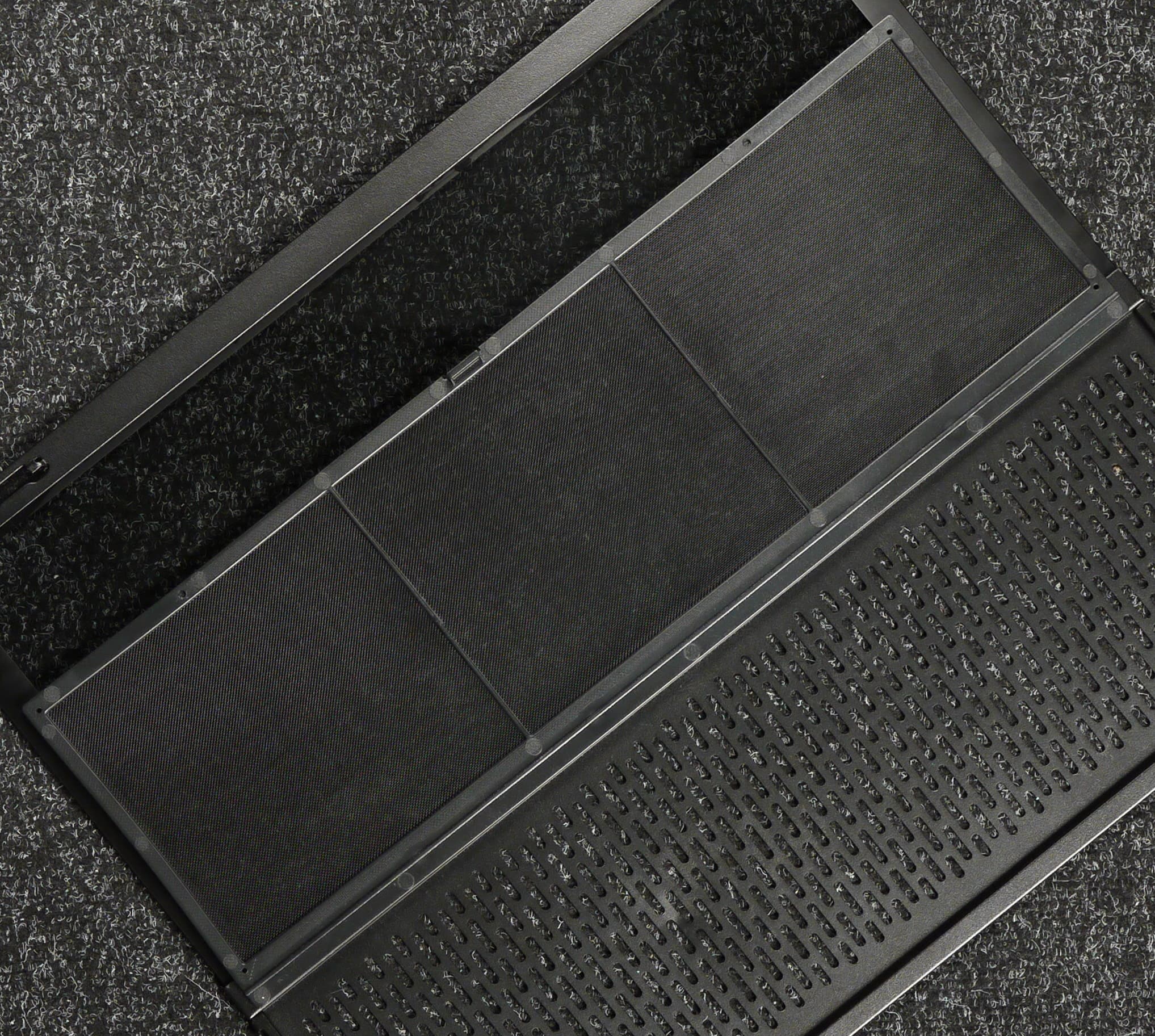 На боковых стенках конструкция похожая, но отличается тем, что стекло занимает не всю площадь лицевой части панели, а только около половины последней, на остальной площади располагается вентиляционная решетка, под которой смонтирован пылевой фильтр.