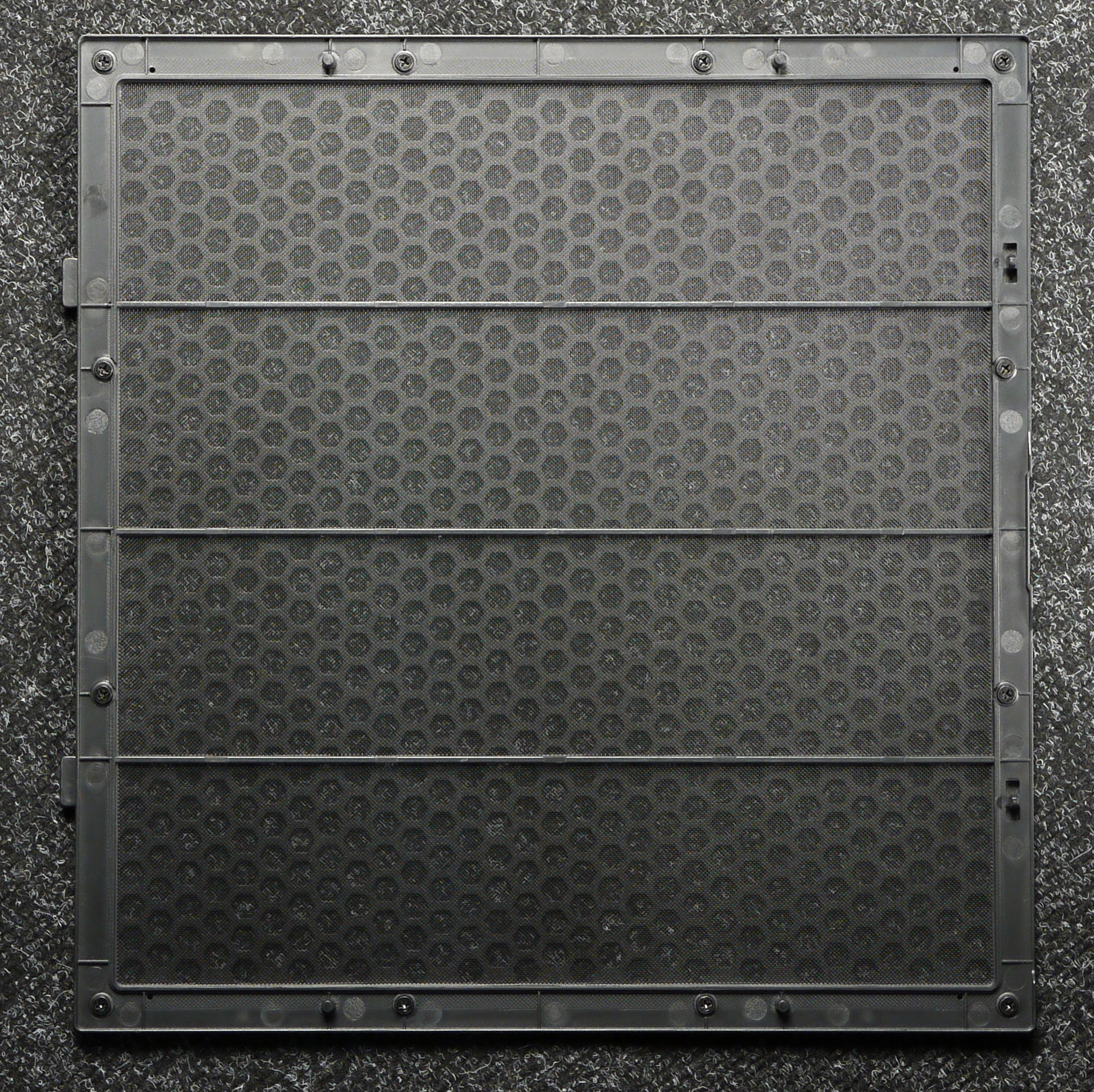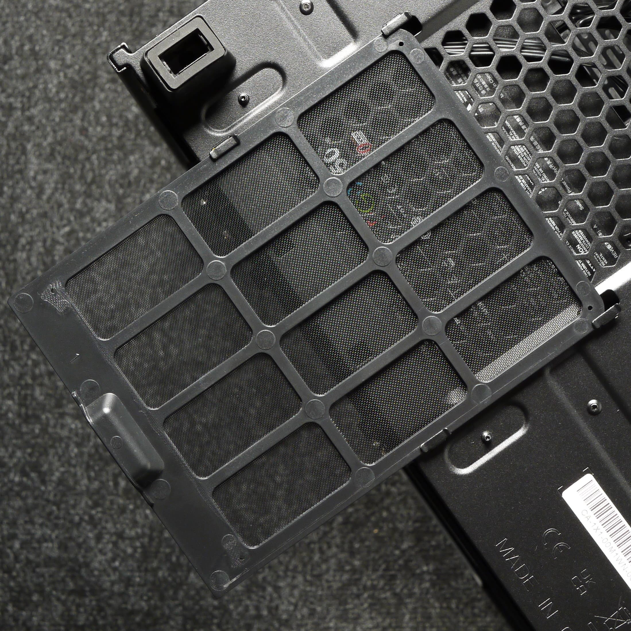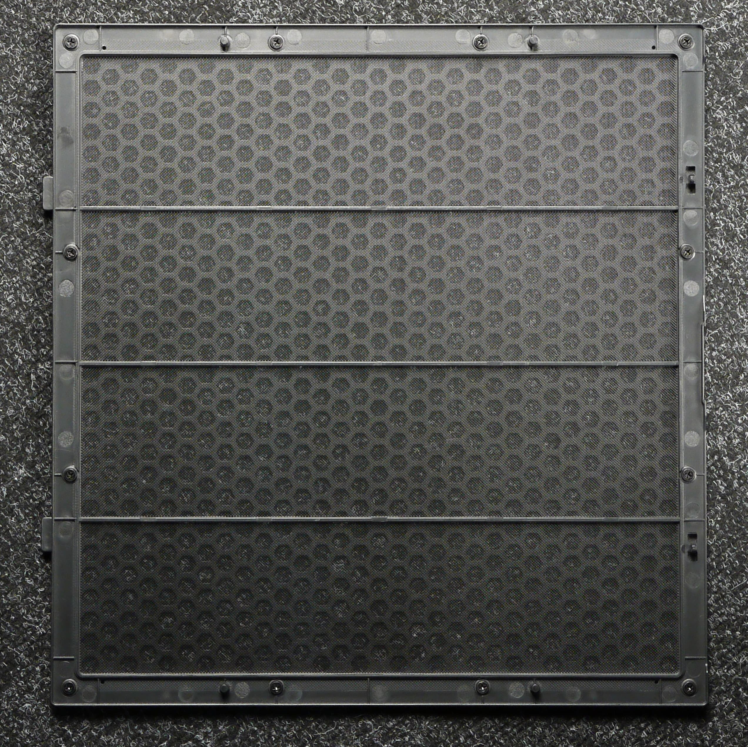 Сзади тут также имеется фильтр, который удобно снимается и ставится на место благодаря магнитной окантовке, однако выполнен он из достаточно крупной пластиковой сетки. Но в данном случае этот момент не сильно критичен, поскольку большое количество пыли в него попадать не должно, особенно при работающих вентиляторах. Если же вентиляторы демонтировать, то ситуация вполне может измениться в худшую сторону.