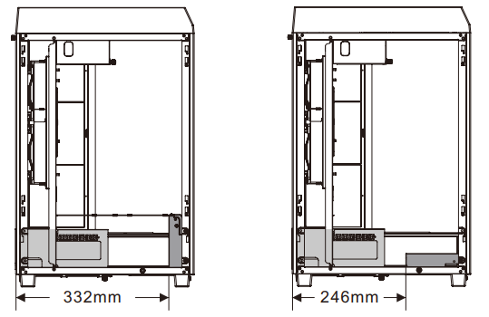 Часть стоек для монтажа системной платы заранее проставлены производителем. Сделано это, исходя из габаритов полноразмерной платы формата ATX шириной 244 мм. Для установки платы шириной 330 мм в комплекте есть три стойки и шестигранник для их удобного вкручивания. Также для этого потребуется демонтировать верхние панели кожуха БП.