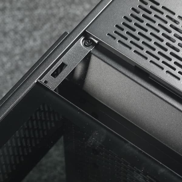 После этого появляется возможность снять верхние сегменты передней и боковых панелей. Система крепления тут используется пазогребенная, но не в стандартном исполнении, когда стенку нужно сдвигать в сторону, а в модифицированном: стенку нужно сдвигать вверх, что заметно удобнее. Также благоприятно сказывается на удобстве достаточно высокая жесткость стенок на скручивание.