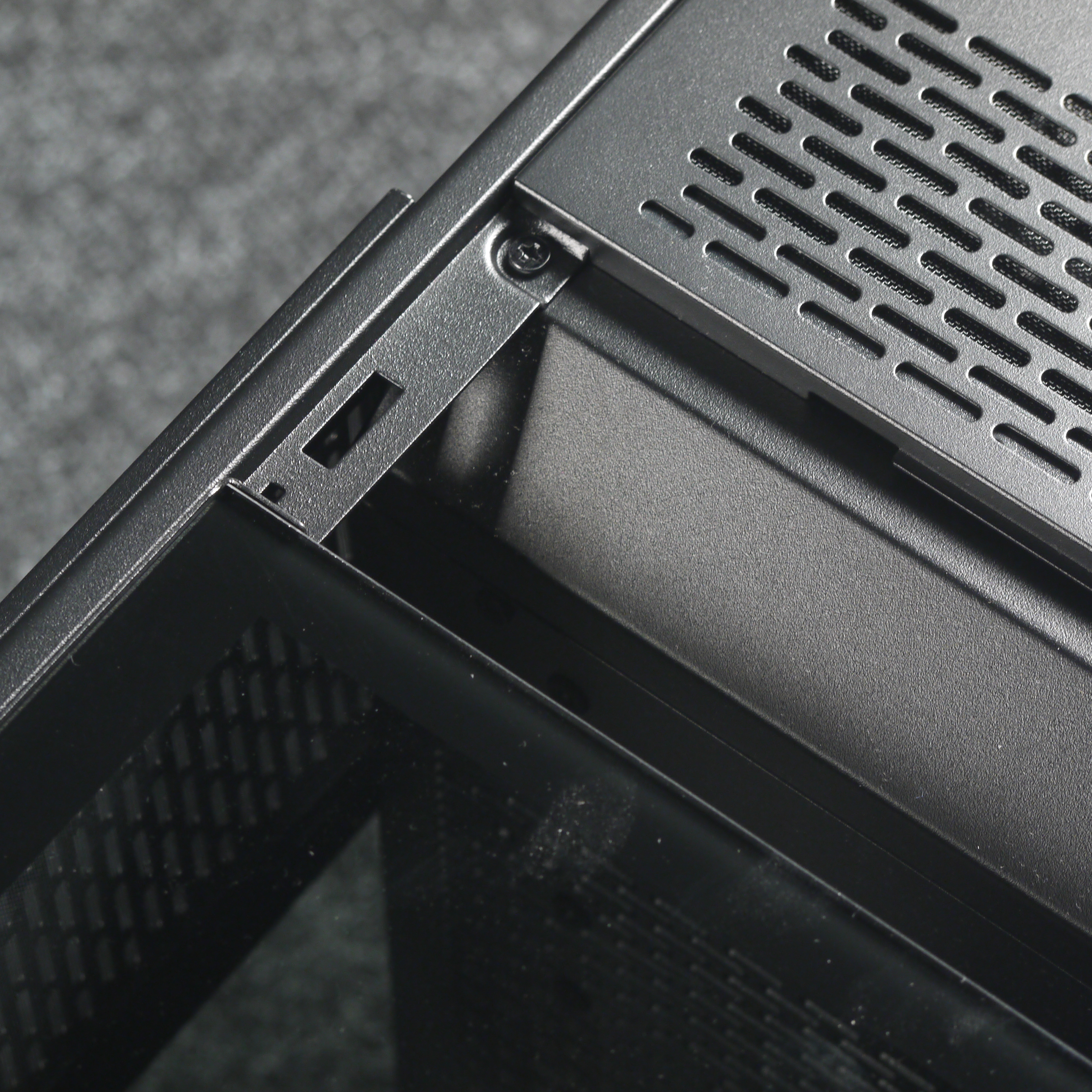 Верхняя стенка у корпуса полностью пластиковая, под ней расположено шасси корпуса.
