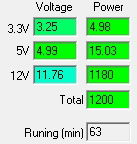 Первым этапом испытаний является эксплуатация блока питания на максимальной мощности продолжительное время. Такой тест с уверенностью позволяет удостовериться в работоспособности БП.
