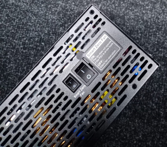 Блок питания оснащен активным корректором коэффициента мощности и имеет довольно широкий диапазон питающих напряжений от 100 до 240 вольт. Это обеспечивает устойчивость к понижению напряжения в электросети ниже нормативных значений.