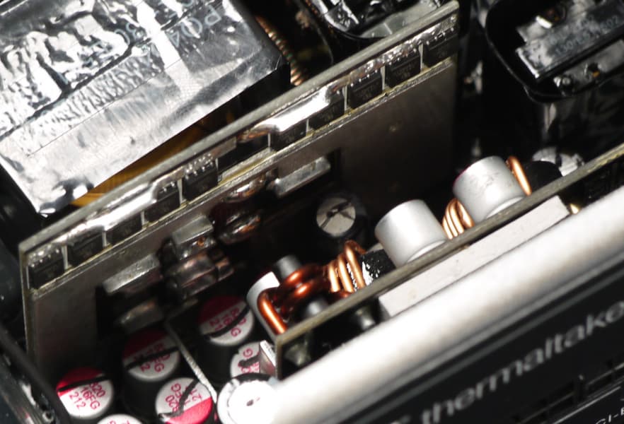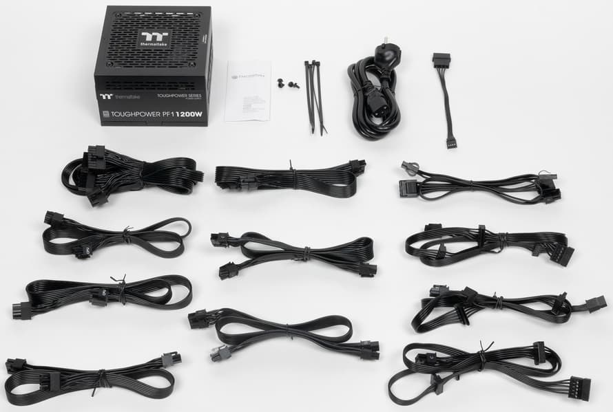 Thermaltake Toughpower PF1 1200W Platinum продемонстрировал относительно высокий КПД, в нем использованы вентилятор на гидродинамическом подшипнике с высоким ресурсом работы и конденсаторы японских производителей. Таким образом, можно рассчитывать на достаточно долгую жизнь этого блока питания даже при постоянных нагрузках. Блок питания позволяет включить гибридный режим охлаждения, на малой мощности он может длительно работать с остановленным вентилятором.