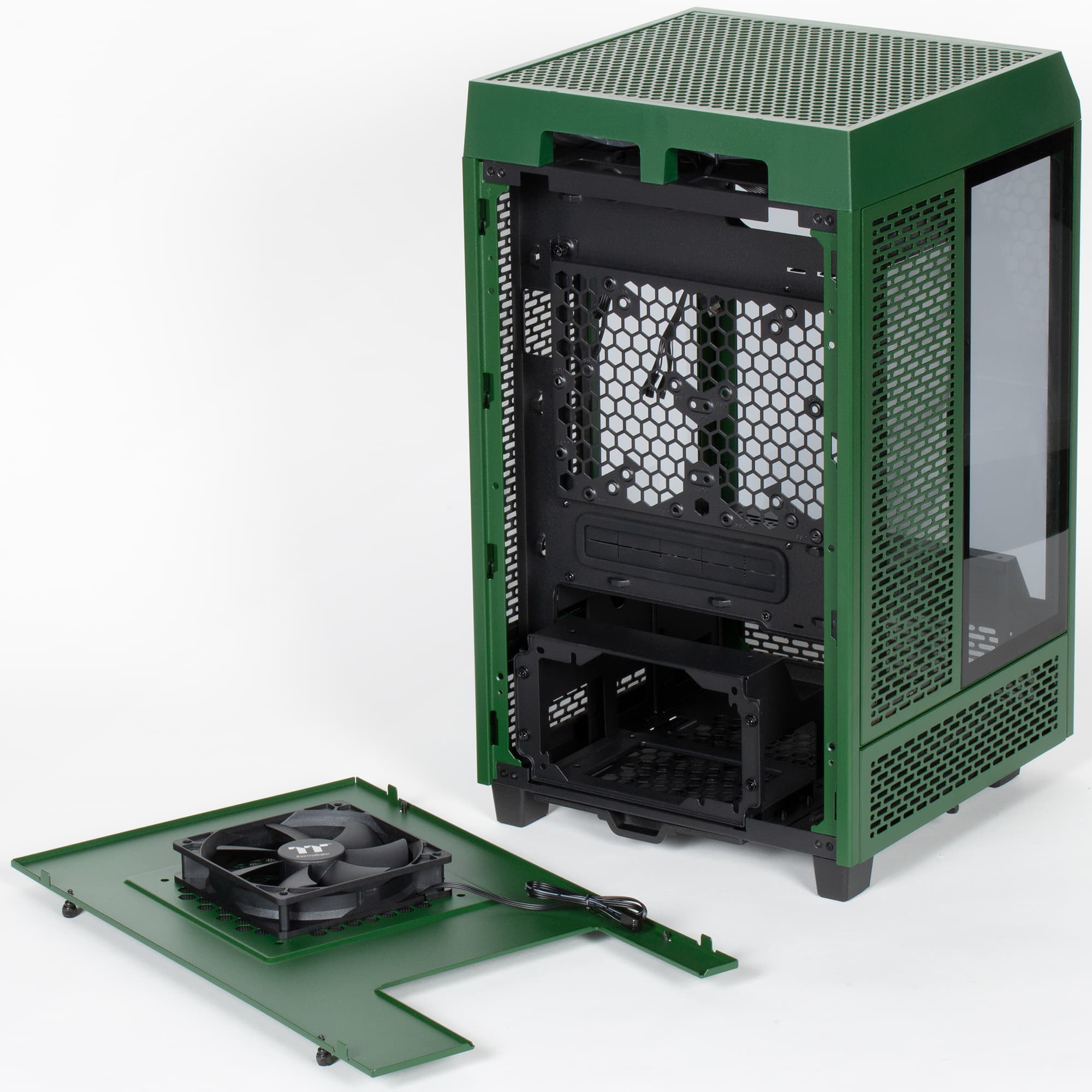Корпус комплектуется вентиляторами собственного производства Thermaltake. Встроенной подсветки у них нет. Разъем у вентиляторов стандартный трехконтактный с управлением изменением питающего напряжения.