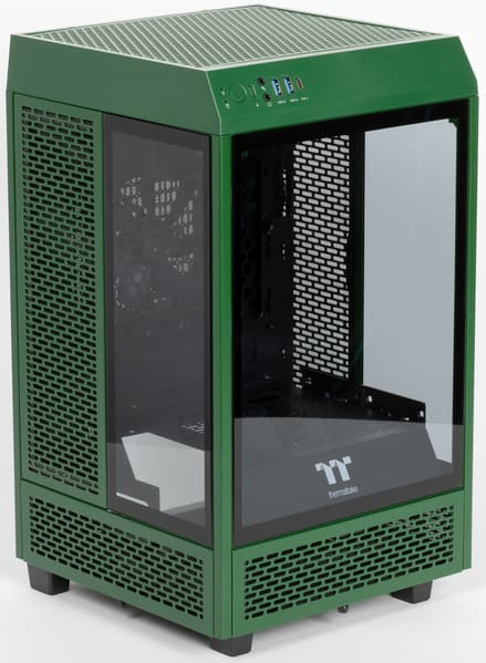 К нам на тестирование поступил довольно оригинальный корпус Thermaltake — Tower 100. Корпус имеет форму башни, это параллелепипед с квадратным основанием. Он рассчитан на установку плат Mini-ITX, но совсем миниатюрным его назвать точно нельзя: длина сторон основания составляет 266 мм при высоте 463 мм.