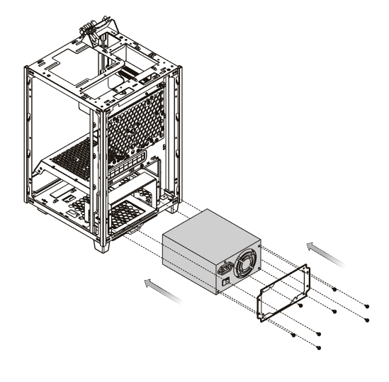 БП формата ATX фиксируется при помощи четырех винтов на монтажной рамке, после чего он заводится в корпус со стороны задней панели. Корпус предусматривает установку блоков питания с длиной корпуса до 180 мм (по заявлению производителя). Мы рекомендуем использовать БП с корпусом длиной не более 140 мм, так как в этом случае останется больше места для укладки неиспользуемых проводов.
