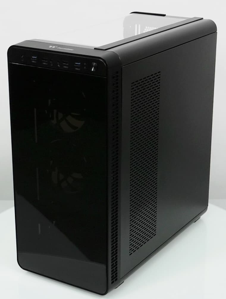 Thermaltake View 37 RGB Edition оставил хорошее впечатление не только из-за интересного и действительно оригинального дизайна, но из-за достойного исполнения в металле, что бывает не так уж часто. Шасси у корпуса довольно простое, но это и хорошо, так как оно позволяет удобно манипулировать внутри при сборке или иных действиях. Отдельно упомянем комплектный контроллер управления вентиляторами с возможностью управления от совместимых системных плат, а также три предустановленных вентилятора с подсветкой. Некоторой доработки требует конструкция панорамной панели, которая не всегда функционирует без нареканий. Есть небольшие претензии и к пылевым фильтрам. Серьезных недостатков у корпуса мы не выявили.