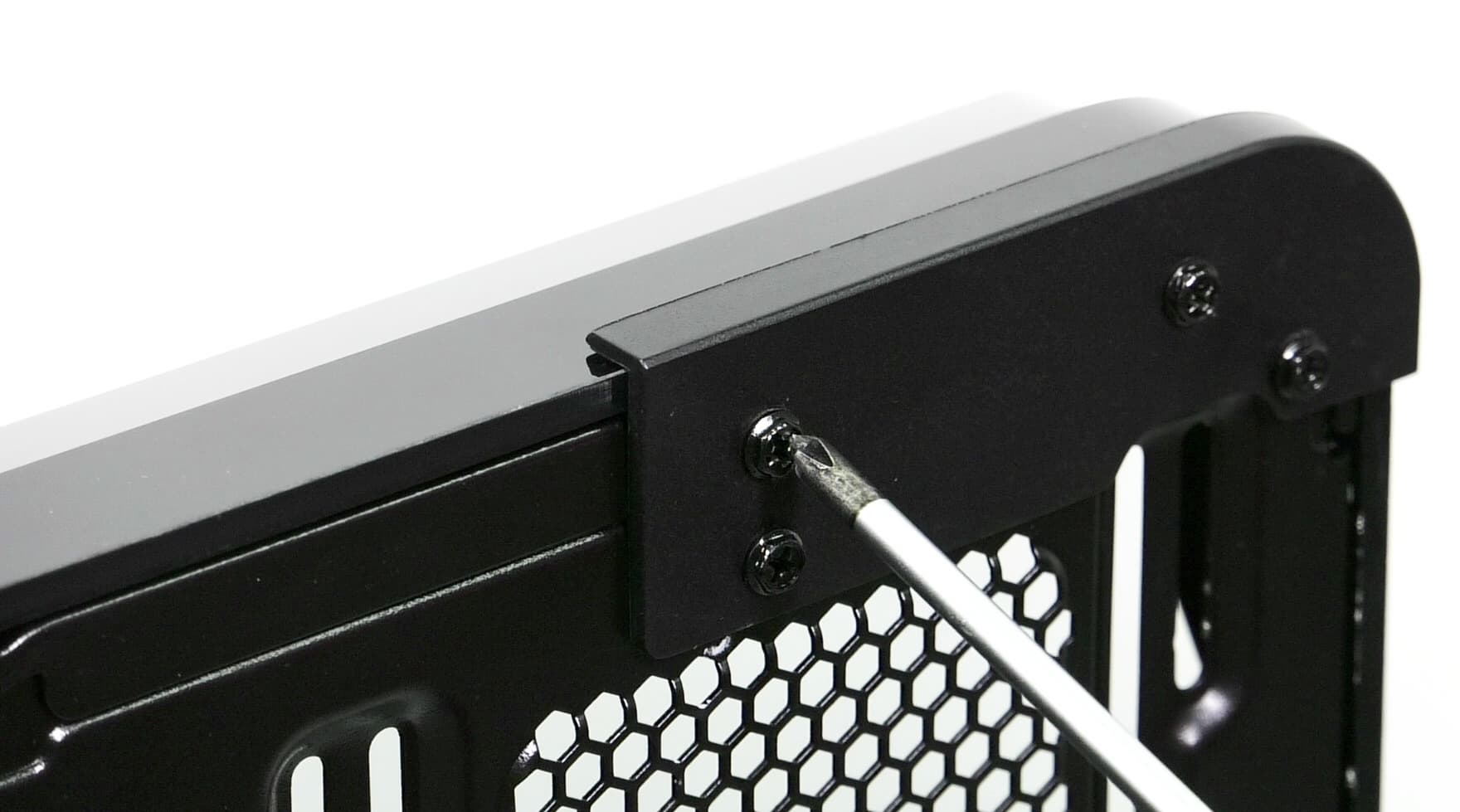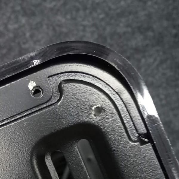 Для улучшения фиксации панорамной панели, особенно при транспортировке, предусмотрена пластиковая накладка, которая фиксируется четырьмя винтами под крестовую отвертку. Помимо того, что данная деталь улучшает фиксацию панорамной панели, также она закрывает собой щель между нею и шасси корпуса в районе изгиба.