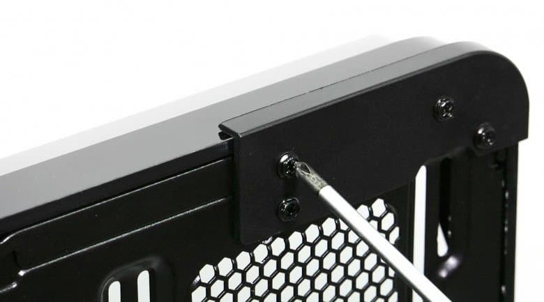 Также есть опциональная возможность зафиксировать диск формата 3,5″ в корзине при помощи винта сквозь рамку. Отметим, что данные рамки являются универсальными, их можно использовать для установки 2,5″ накопителей с креплением дисков через дно.